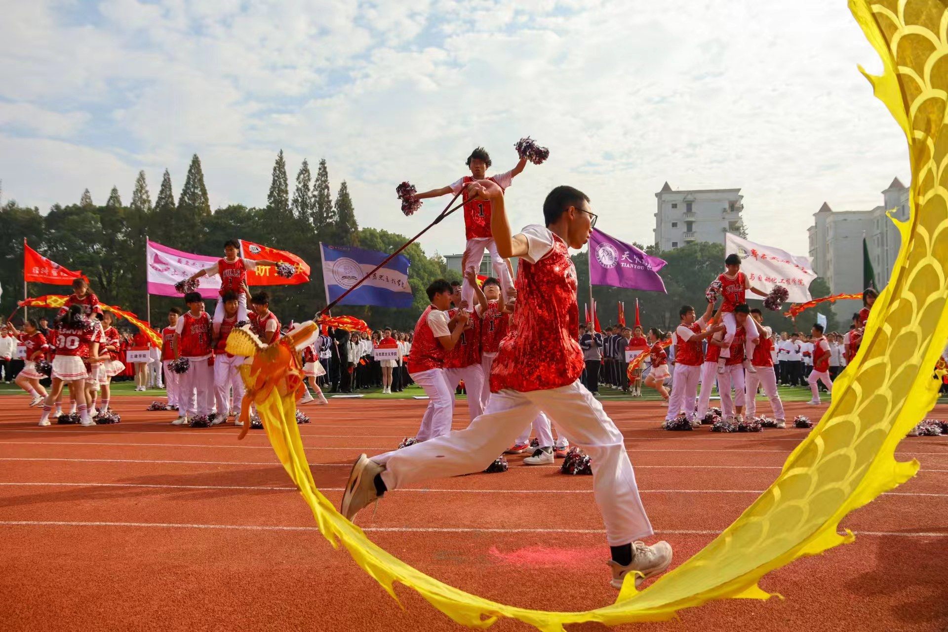 伴着激昂的《运动员进行曲》,国旗队、校旗队、彩旗队和19个师生方阵队依次入场,他们激情澎湃,步履铿锵,喊着响亮的口号,迈着坚定的步伐向主席台走来,展现出蓬勃朝气。
