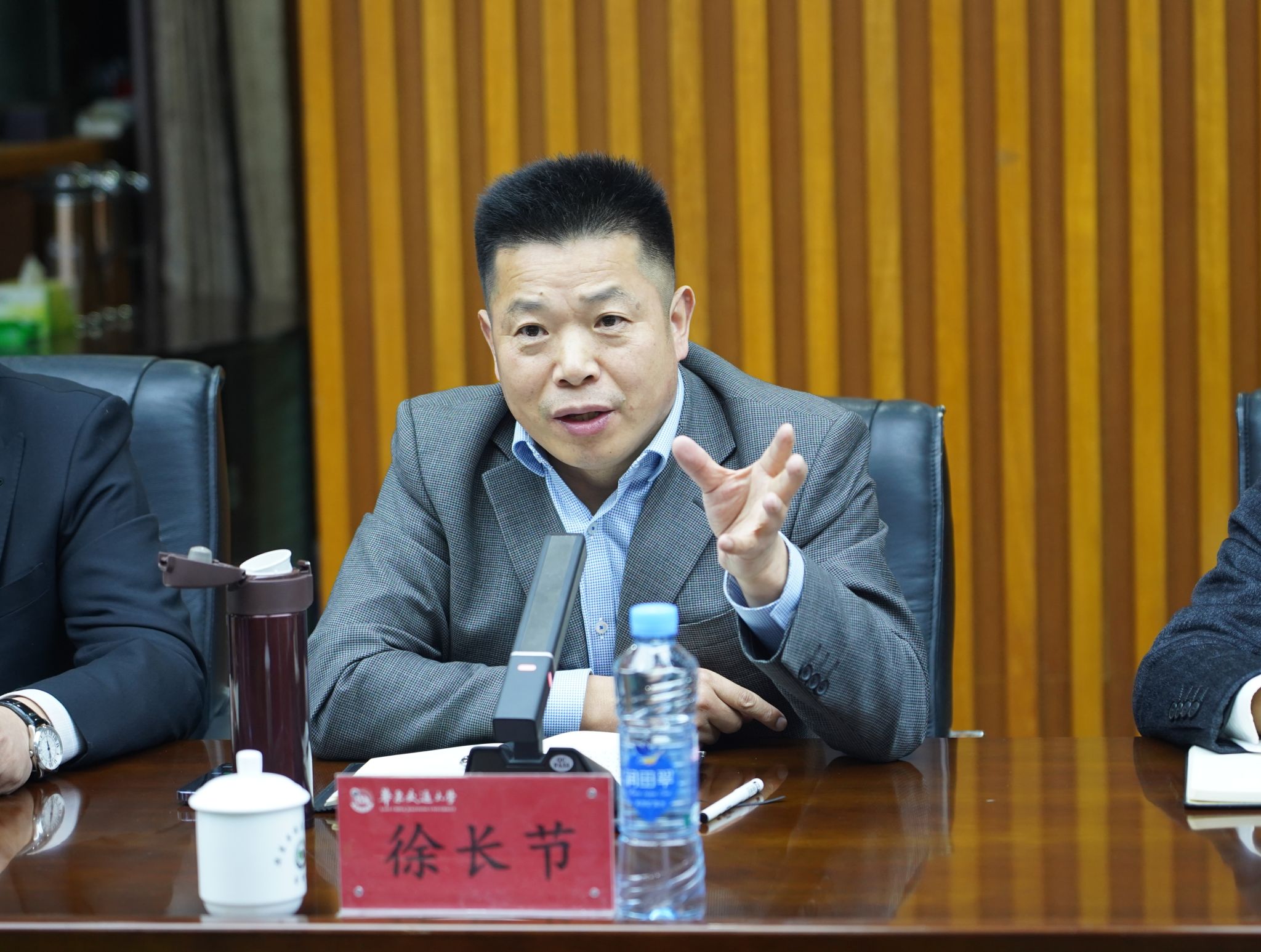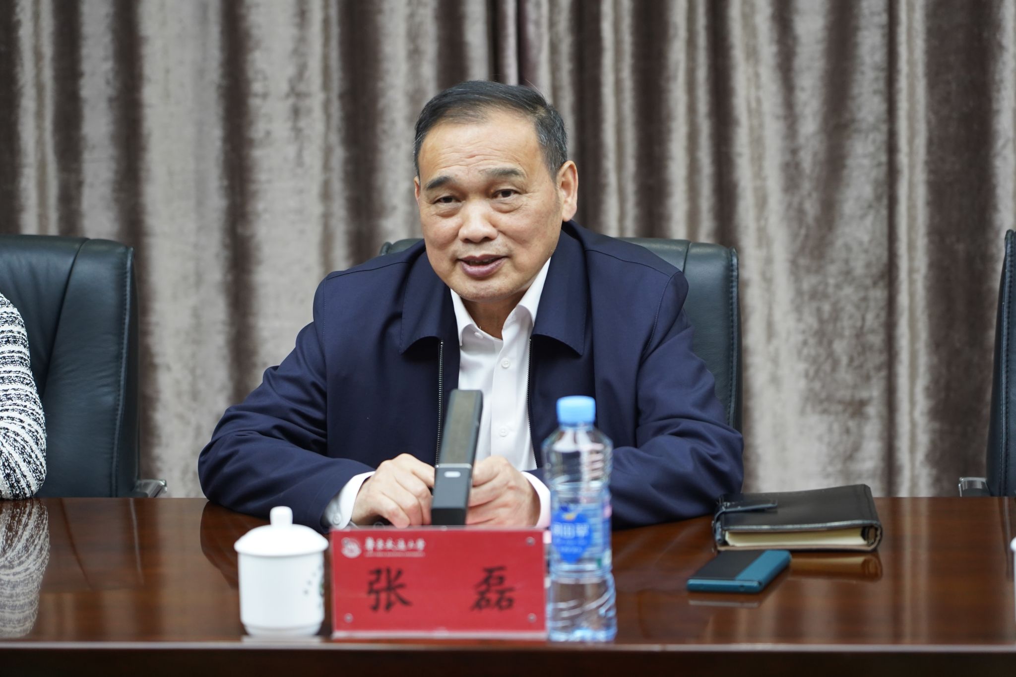 11月18日下午,经开区党工委委员、管委会副主任张磊一行来校调研,双方就校内小区整治事宜进行座谈商讨。校党委副书记、校长徐长节,校党委委员、副校长欧阳志刚出席座谈会。
