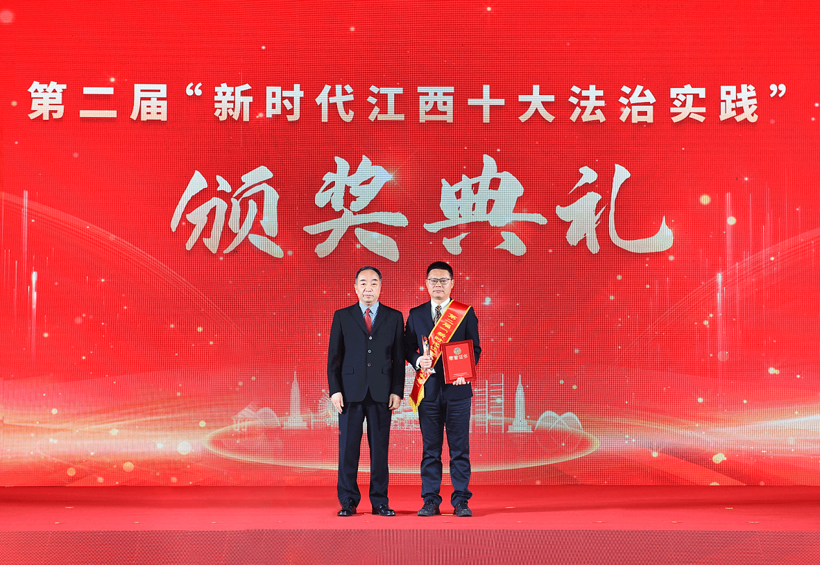 12月31日,第二届“新时代江西十大法治实践”颁奖典礼在南昌举行。beat365申报的“beat365中文唯一官网全国首创铁道法治学学科 填补国内多项空白”法治实践项目当选第二届“新时代江西十大法治实践”。