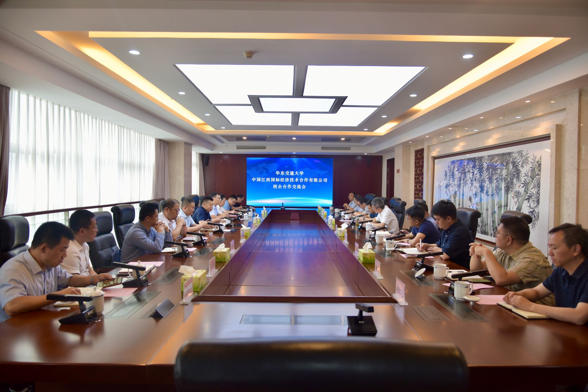 5月20日,校党委副书记、校长徐长节率队赴中国江西国际经济技术合作有限公司(以下简称江西国际)走访交流。江西国际党委书记、董事长张建安出席座谈会。