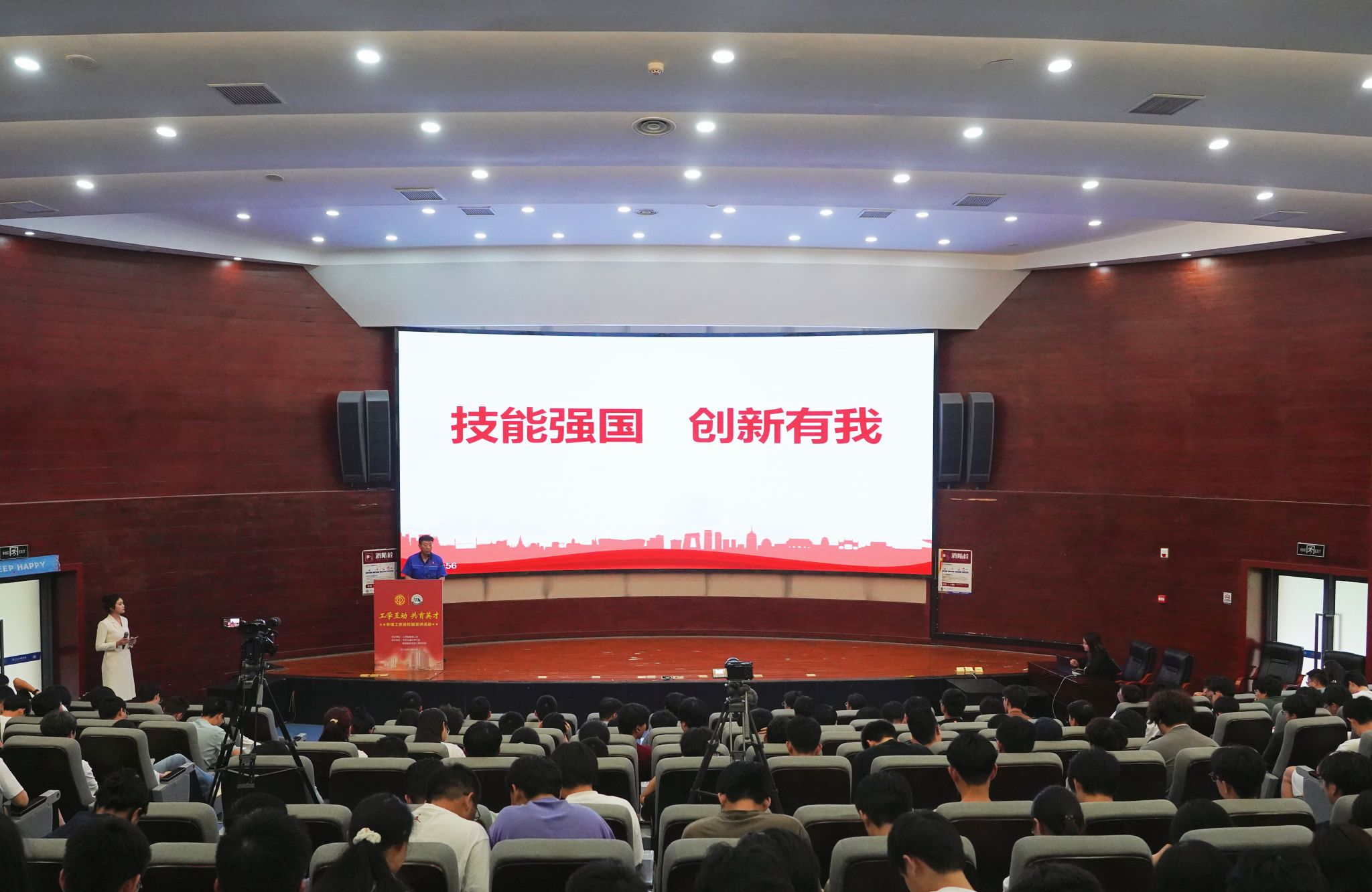 为热烈庆祝中华全国总工会成立100周年,大力弘扬劳模精神、劳动精神、工匠精神,6月10日下午,“工学互动,共育英才”暨“劳模工匠进校园”宣讲活动在北区圆形报告厅举行。全国劳动模范、全国人大代表、江铃集团钳工特级技师刘辉走进校园,为师生带来了一场震撼心灵的匠心传承盛宴。省教育工会负责人出席活动。