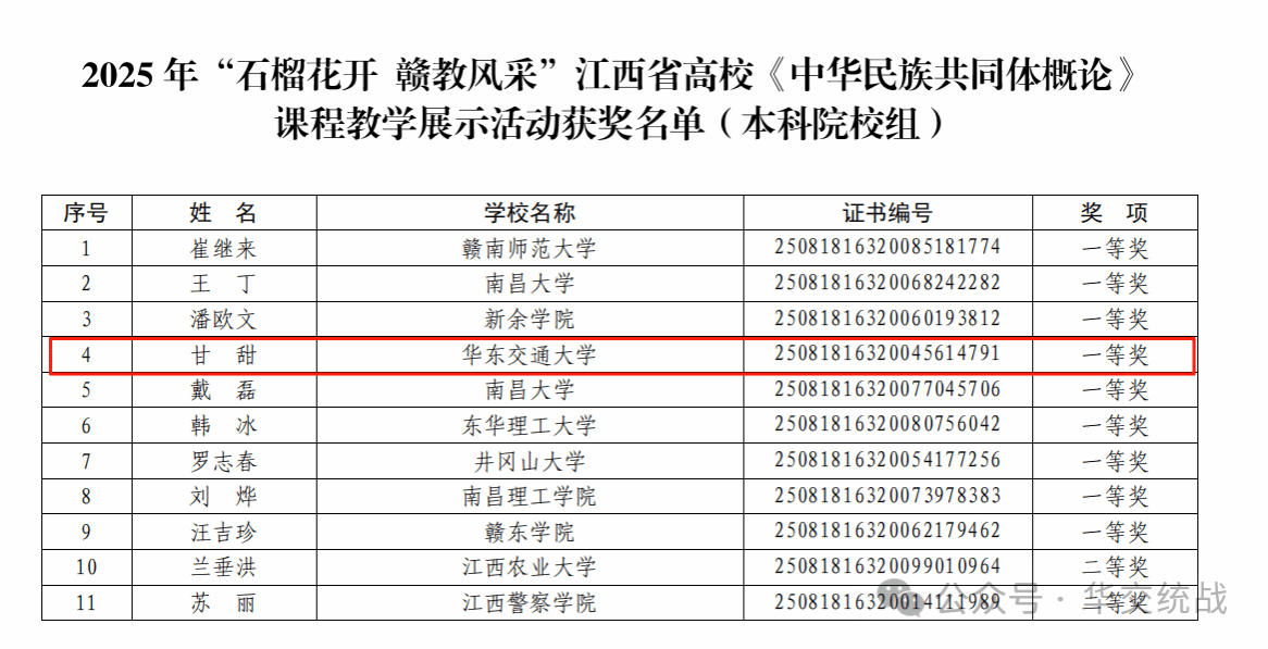 近日,江西省教育厅公布了2025年“石榴花开,赣教风采”江西省高校《中华民族共同体概论》课程教学展示活动评选结果和2025年江西省教育系统“同心‘石榴籽’共筑中国梦”主题班会展示活动评选结果。