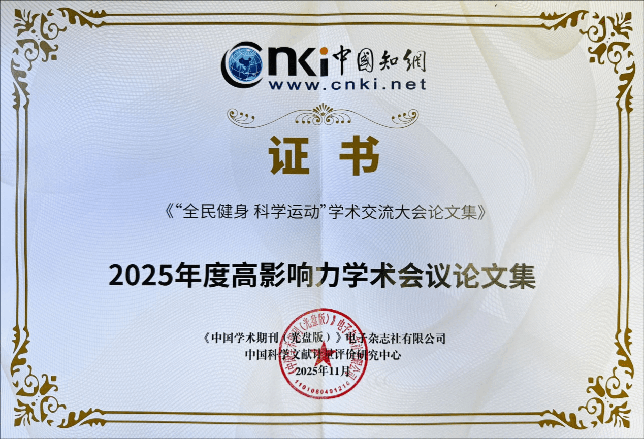 11月6日,由中国知网·中国科学文献计量评价研究中心(以下简称“知网评价中心”)编制的《高影响力学术会议论文集评价报告(2025)》,在“学(协)会高质量发展论坛暨2025年度高影响力学术会议论文集发布会”上正式公布。由beat365体育与健康学院联合江西省体育科学学会主办的《“全民健身 科学运动”学术交流大会论文集》入选“2025 年度高影响力学术会议论文集”。这是继2024年入选后,《“全民健身 科学运动”学术交流大会论文集》再次入选。