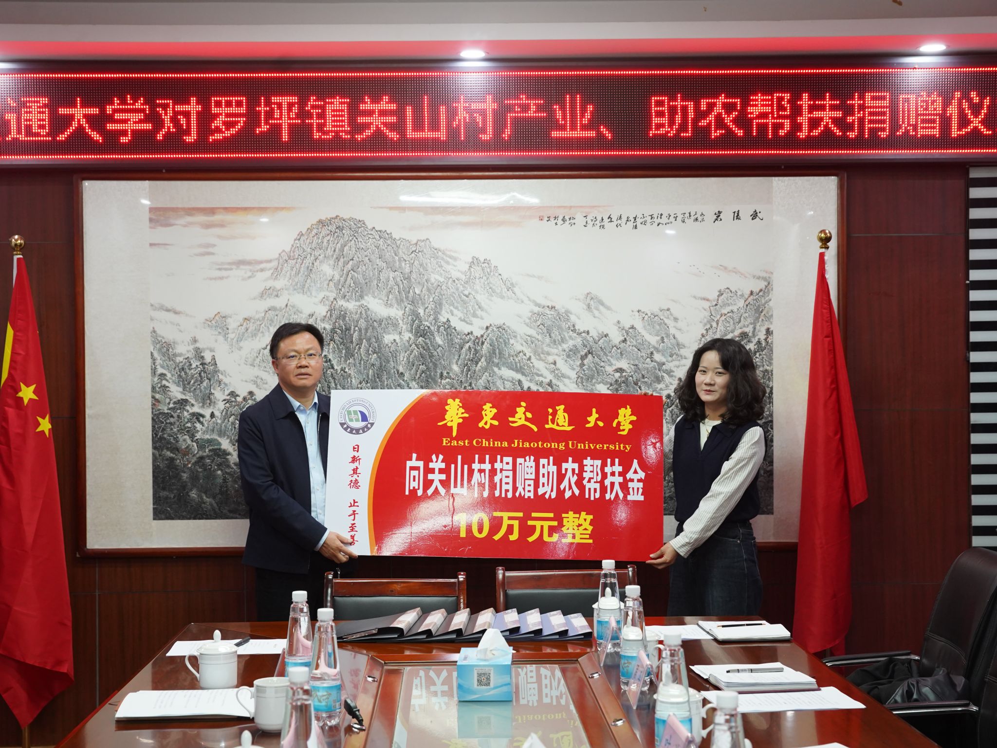 徐长节、杨德敏分别代表学校向关山村捐赠15万元产业帮扶金和10万元助农帮扶金。工会、华交产业集团负责人与关山村负责人签订了相关帮扶协议。