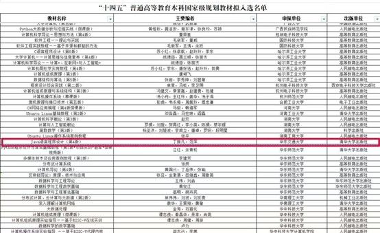 近日,教育部公布“十四五”普通高等教育本科国家级规划教材拟入选名单,beat365信息与软件工程学院丁振凡教授主编的教材《Java语言程序设计(第4版)》成功入选。
