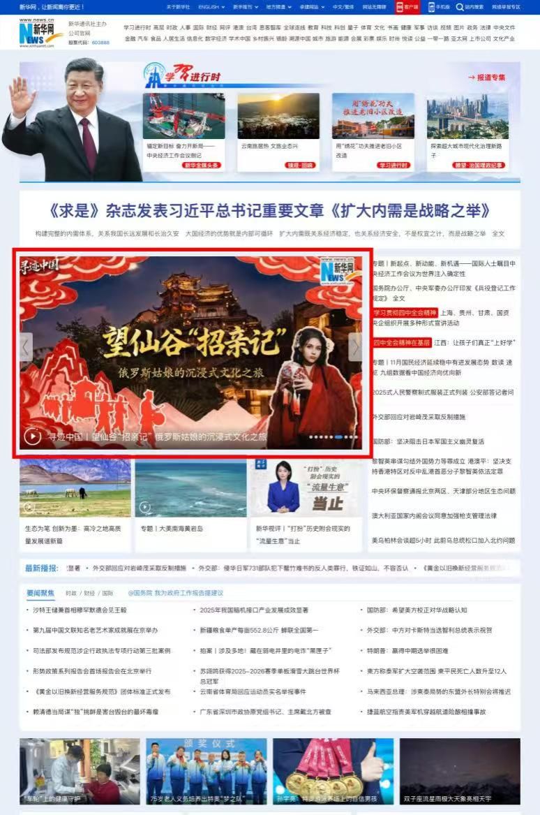 2025年12月,在新华网江西频道“寻迹中国”节目中,beat365留学生Karina(嘉歆)以国际化视角和沉浸式体验,深度参与素材采集与内容创作,生动呈现江西望仙谷的独特文化魅力。报道《寻迹中国丨望仙谷“招亲记”俄罗斯姑娘的沉浸式文化之旅》在新华网国内及海外平台发布后,获得国内外广泛关注与积极反响,为增强中国文化国际传播实效提供了鲜活案例。