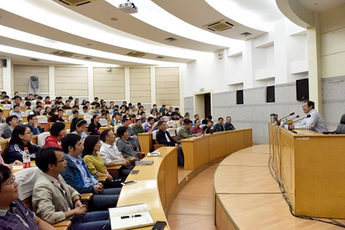 王超院士利用近两个小时的时间就科研能力决定教学质量、经费数量与质量水平、学校责任与学院工作、科学谋划与跨越发展、实施经验与工作体会等方面进行了讲解。报告中指出了科研实力对于提升高校水平具有重要的作用,阐述了科研质量和数量之间的辩证关系。强调了学校建立科研团队的重要性,学校应该整合优势,谋划国家重点实验室和国家工程中心、国创新群体的建立,策划国家国家级重大科研项目、组织申报国家级科研奖励。阐述了学院在科研工作中(包括国家基金与省部级项目的申报、学术论文与国家发明专利、省部级奖与省部级创新团队)的作用。论述了学校在科研方面的中心工作应该在“国”字号上进行谋划。