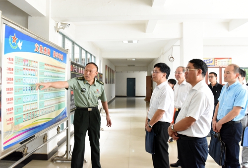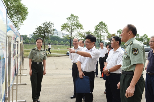 中组部调研组参观介绍国防生培养情况、军营文化和国防生培养发展简史等展板。