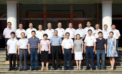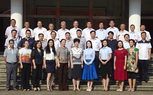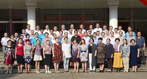 (全体校领导与从教满30周年教师合影)