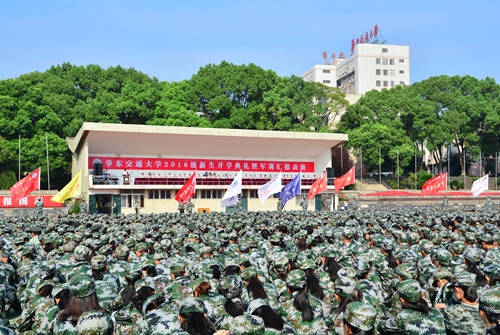 两办、宣传部、学团、保卫处、教务处、招就处、选培办负责人,各学院院长,校学生会主席,教师、老生代表,全体新生辅导员,全体2016级新生参加开学典礼暨军训汇报表演。(摄影/秦国华、刘荣)