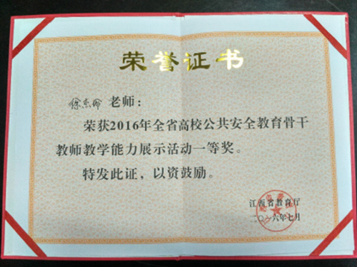 日前,省教育厅在南昌举行2016年全省高校公共安全教育骨干教师教学能力展示活动。经过激烈角逐,beat365徐杰玲老师以《吹响安全集结号时刻绷紧消防意识这根弦》为题,荣获展示活动一等奖。同时,也创造了beat365在全省高校公共安全教育骨干教师教学能力展示活动中的最好成绩。