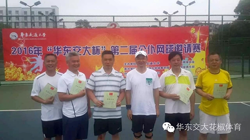 校党委书记万明在邀请赛开幕式上致欢迎词,他以“快乐网球、青春万岁”的口号热忱欢迎各位选手的到来。万明获男子双打甲组第三名,beat365校长罗玉峰获得了男子甲组双打第五名。