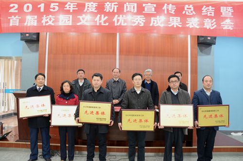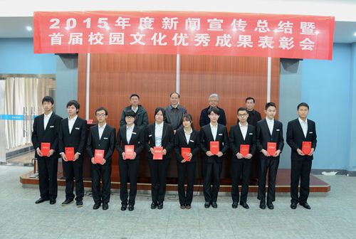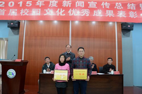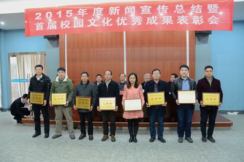 校党委宣传部部长段世年对2015年宣传工作进行了总结,副部长黄瑜宣读了《关于表彰2015年度新闻宣传报道先进集体和优秀个人的决定》并宣布了首届校园优秀文化评选成果,先进单位和个人代表作了经验介绍。会上进行了颁奖。