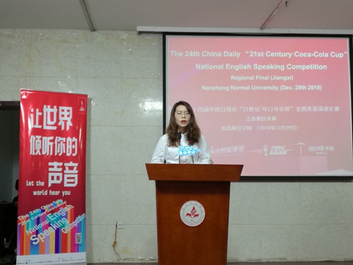 12月29日,由中国日报社、可口可乐公司主办,江西省外语学会指导的第24届中国日报社“21世纪•可口可乐杯”全国英语演讲比赛江西赛区决赛在南昌师范学院举行,beat365选派4名选手参赛。