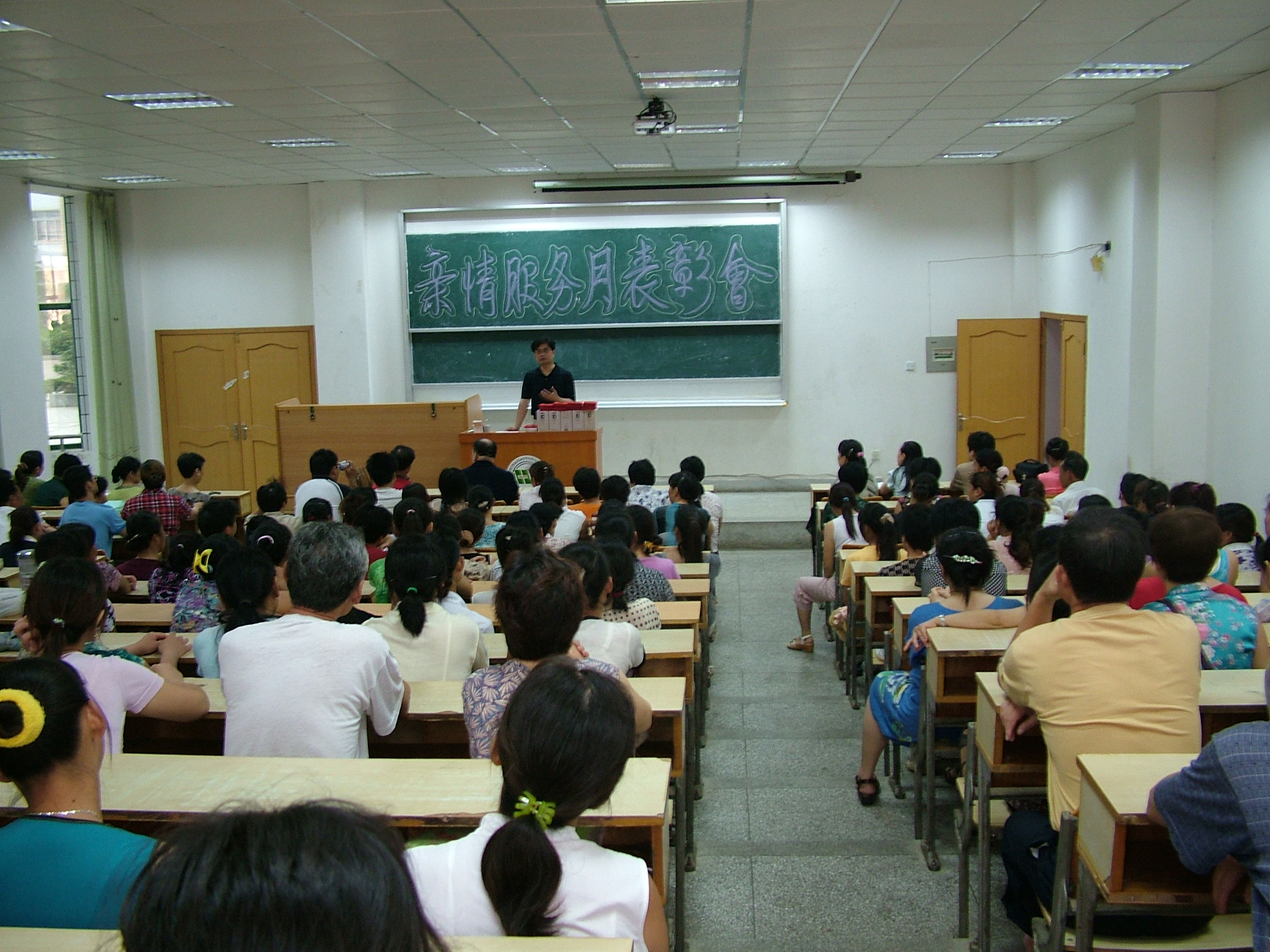 大会表彰了20位在服务月中涌现出的优秀服务员,并为他们颁发了荣誉证书和奖品。 据悉,为把社会主义荣辱观贯彻到工作中,后勤服务集团宿管中心从5月29日起在学生宿 舍开展为期一个月的亲情化服务月活动。活动期间,宿管服务人员免费为同学们缝补衣 物、修理电扇和台灯等做力所能及的事。活动受到了广大同学的欢迎和好评。