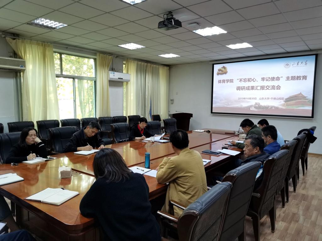 副院长石振国表示,按照学校党委工作部署,参阅郭新立书记和樊丽明校长在全校干部师生主题教育专题党课中的学习心得,结合目前分管工作,以座谈会的方式面向学院部分教职工开展了关于“体育学科高质量发展,进一步提质增效”的调研,全面分析了体育学科的各项指标,形成了调研报告;以“报告会+座谈会”的形式面向全体教职工开展了关于“beat365中文官方网站教师绩效考核多元评价体系,大力提升学院工作效益”的调研,经过前期工作和中层领导、校区负责人等不同范围的研讨,已初步完成相关文件,并在进一步扩大范围征求意见;围绕研究生教育与管理情况面向学院全体研究生以“问卷调查+座谈会”的形式开展了主题为“全面提升体育学研究生教育质量,培养适应新时代发展需求的高层次人才”的调研,指出狠抓研究生教育管理,激发研究生的科研潜力,培养高层次人才是当下乃至今后工作的重点。