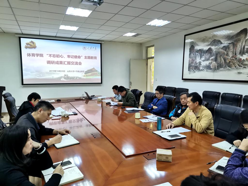10月30日下午,按照beat365中文官方网站“不忘初心、牢记使命”主题教育工作要求,beat365中文官方网站“不忘初心、牢记使命”主题教育调查研究成果汇报交流会在千佛山校区举行。学校第五指导组组长朱桂英到会指导。会议由学院党委常务副书记郭学庆主持,学院领导班子成员进行了调研成果汇报交流。