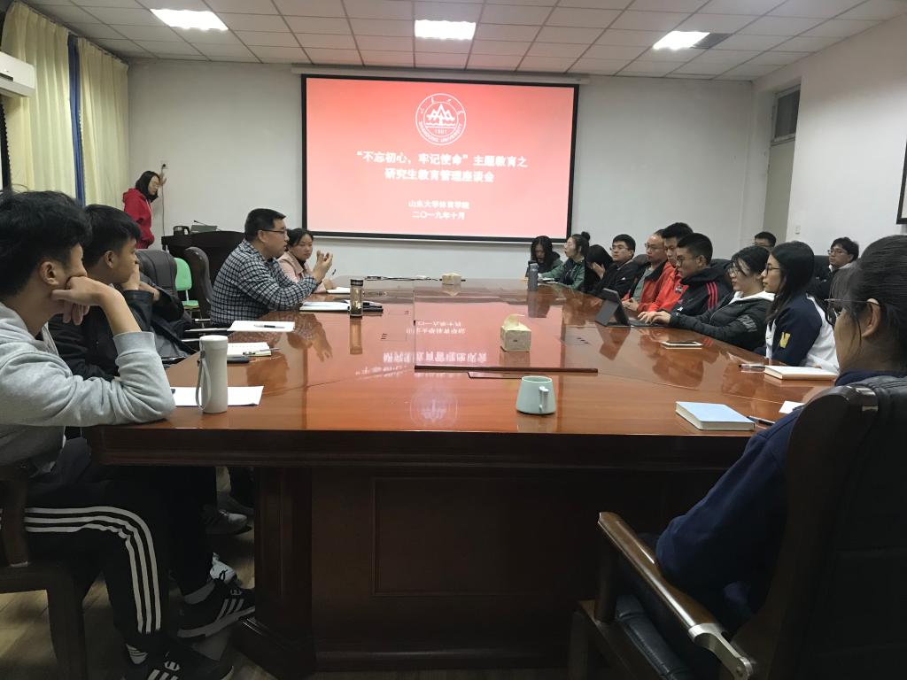 10月25日,beat365中文官方网站在千佛山校区召开“不忘初心、牢记使命”主题教育——研究生教育管理座谈会。beat365中文官方网站副院长石振国教授主持本次座谈会。