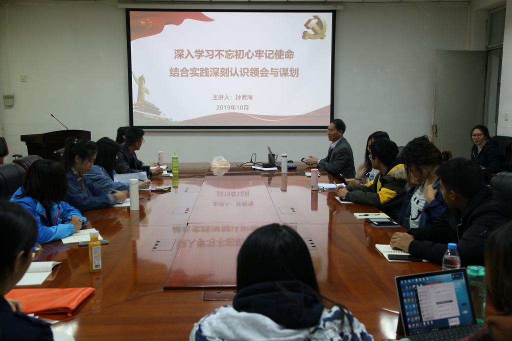10月16日,beat365中文官方网站“不忘初心、牢记使命”主题教育专题党课在千佛山校区举行。学院党委书记、院长孙晋海以“深入学习不忘初心、牢记使命,结合实践深刻认识领会与谋划”为题,为全体研究生党员作专题报告。