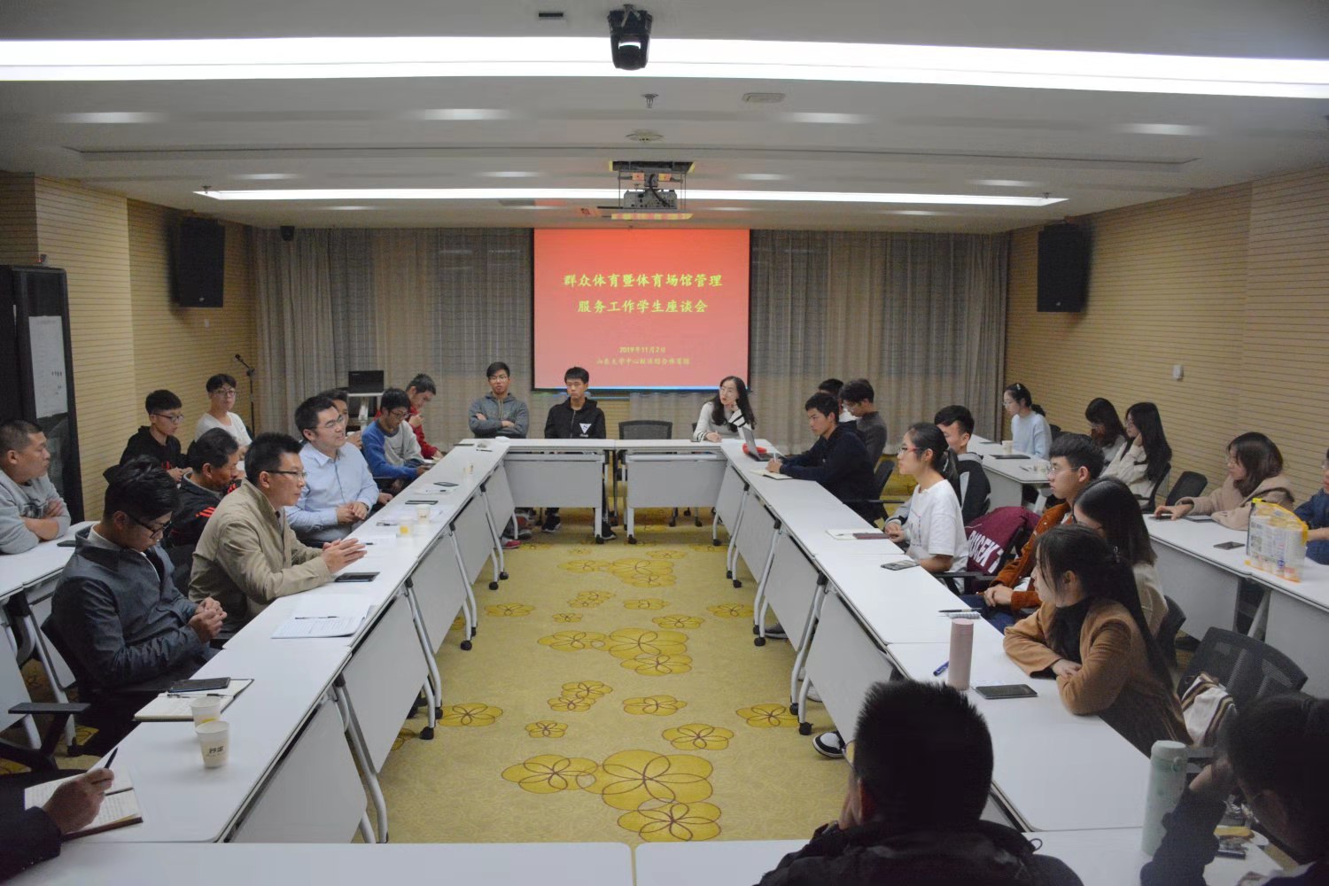 11月2日至3日,为充分听取学生对学校群众体育发展的建议及要求,beat365中文官方网站联合党委学生工作部、党委研究生工作部、团委、齐鲁医学院学生处、兴隆山校区办公室,分别在中心校区、趵突泉校区、兴隆山校区、软件园校区召开beat365中文官方网站群众体育体育设施管理工作座谈会,beat365中文官方网站党委副书记周庆华主持座谈活动,beat365中文官方网站副院长徐剑波,兴隆山校区管理办公室副主任菅维星,体育场馆管理中心、各校区管理办公室老师及各学院学生代表参加了座谈。
