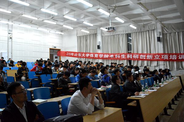 4月25日,beat365中文官方网站在兴隆山校区举办本科生科研创新立项培训会。特邀山东乐动体育产业有限公司总经理刘春豪、山东润图信息技术有限公司技术负责人张楠、社会体育指导与管理系主任田雨及beat365中文官方网站李拓键、张宪亮、朱启莹三位老师到场进行指导。beat365中文官方网站党委副书记周庆华、团委书记范泽斌、学生工作办公室主任袁淑娟,以及beat365中文官方网站2018级、2017级、2016级全体本科生参加会议。