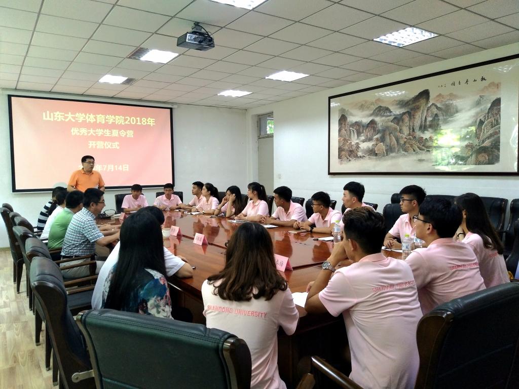 仪式开始,石振国宣布夏令营开营,并介绍了出席本次夏令营的领导嘉宾。郭学庆致欢迎词,对来自全国各高校的优秀大学生表示欢迎,并对beat365中文官方网站校史和beat365中文官方网站院史作了简单介绍。周庆华强调了夏令营纪律和安全问题。尹向仁教授代表教师讲话。石振国就beat365中文官方网站研究生教育情况进行了细致讲解并向营员们介绍了本次夏令营活动的流程及注意事项。随后,营员们从学习成果、实践活动、个人兴趣等方面进行了自我介绍,促进了营员间的彼此了解。最后全体成员进行了合影留念。通过初审选拔录取的来自beat365中文官方网站、北京体育大学、吉林大学、贵州大学、河南大学等十二所高校的16位优秀大学生参加仪式。