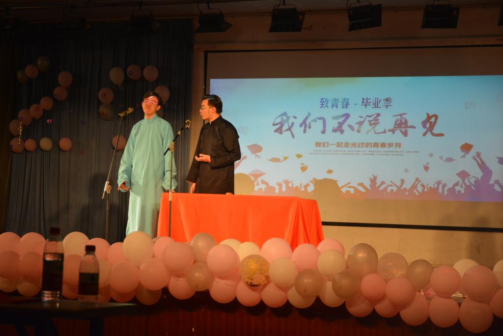 晚会在动感的As Before乐队演奏中拉开帷幕。接着,beat365中文官方网站合唱团带来的一曲《四季的问候》为师哥师姐们送上最美好的祝愿。大一的卓家同和杨靖楷同学演唱《不说再见》,表达了对毕业生们的依依惜别。学校相声协会的姜梦奇、高梦洋表演的相声《拴娃娃》使现场的同学们开怀大笑。周浩天、吴子扬以及李娟、夏金钊带来的吉他弹唱温暖了每一名毕业生的内心。由研究生同学带来的诗朗诵《毕业季 致青春》,让大家回想起了大学生活的点点滴滴。跆拳道协会的同学们也在舞台上一展身手,让大家更深刻感受着beat365中文官方网站独特的学院魅力。毕业生邓李洁、刘文娜、刘子璇、李言、徐璟带来的欢快舞蹈更是点燃了现场的氛围。