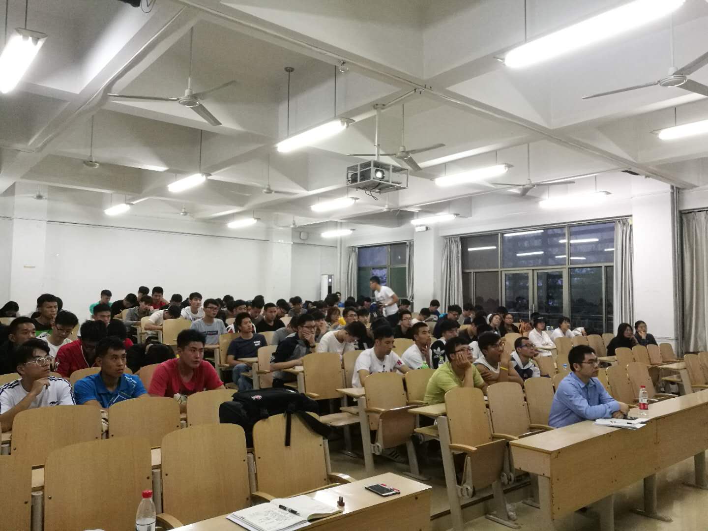 活动伊始,范泽斌首先代表学院对英派斯一行的到来表示热烈欢迎,随后他逐一介绍了出席本次活动的嘉宾和老师。随后,英派斯人力资源经理李烨为同学们作职业生涯规划讲座。她将大学生的职业生涯起点定位在大一,并提问了在场的几位同学的一周生活的安排,她建议同学们生活学习要有个坚定的目标。她指出现在年轻人身上的共性是迷茫,建议同学们可以去请教前辈、旅行、思考等等。接着,英派斯培训学校校长杜伟上台为同学们作健身行业就业指导报告。他先对“英派斯”健康管理有限公司进行了简要的介绍,然后他对健身行业从概述、发展现状、健身教练职业发展特征、健身教练从业准备和健身教练国家职业资格证书五个方面作详细宣讲。报告最后,杜伟和李烨对现场同学们提出的问题一一进行了解答。