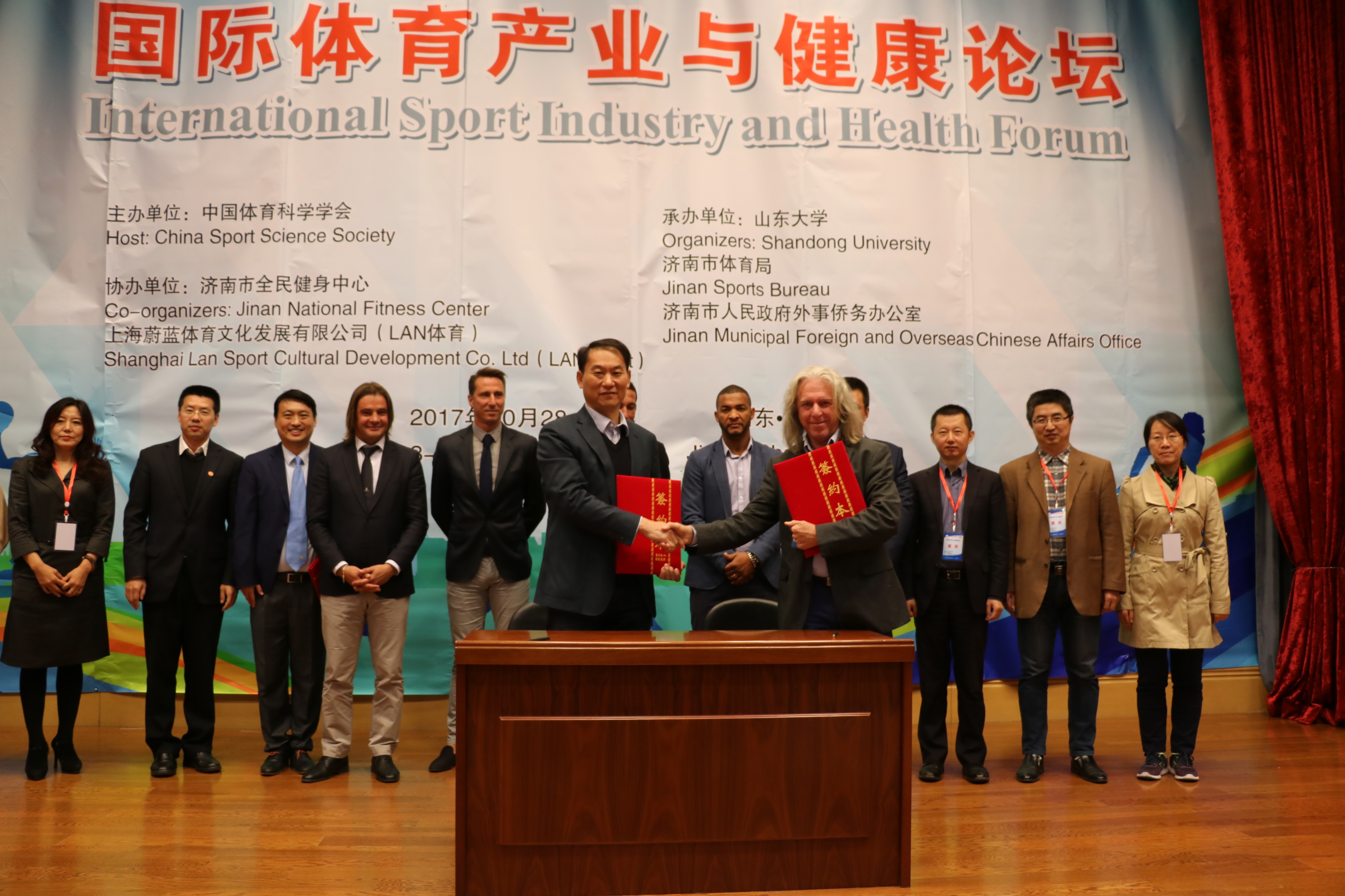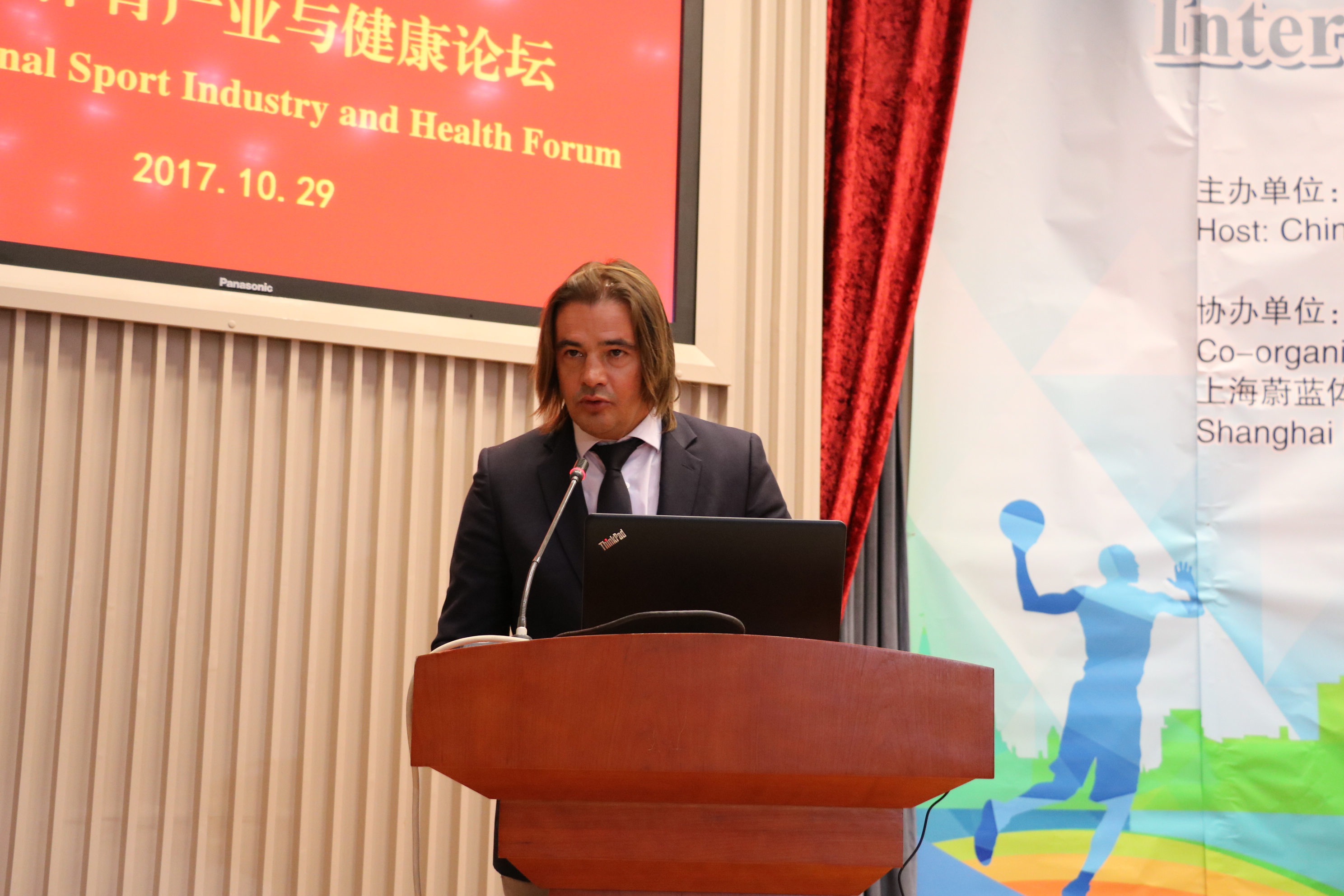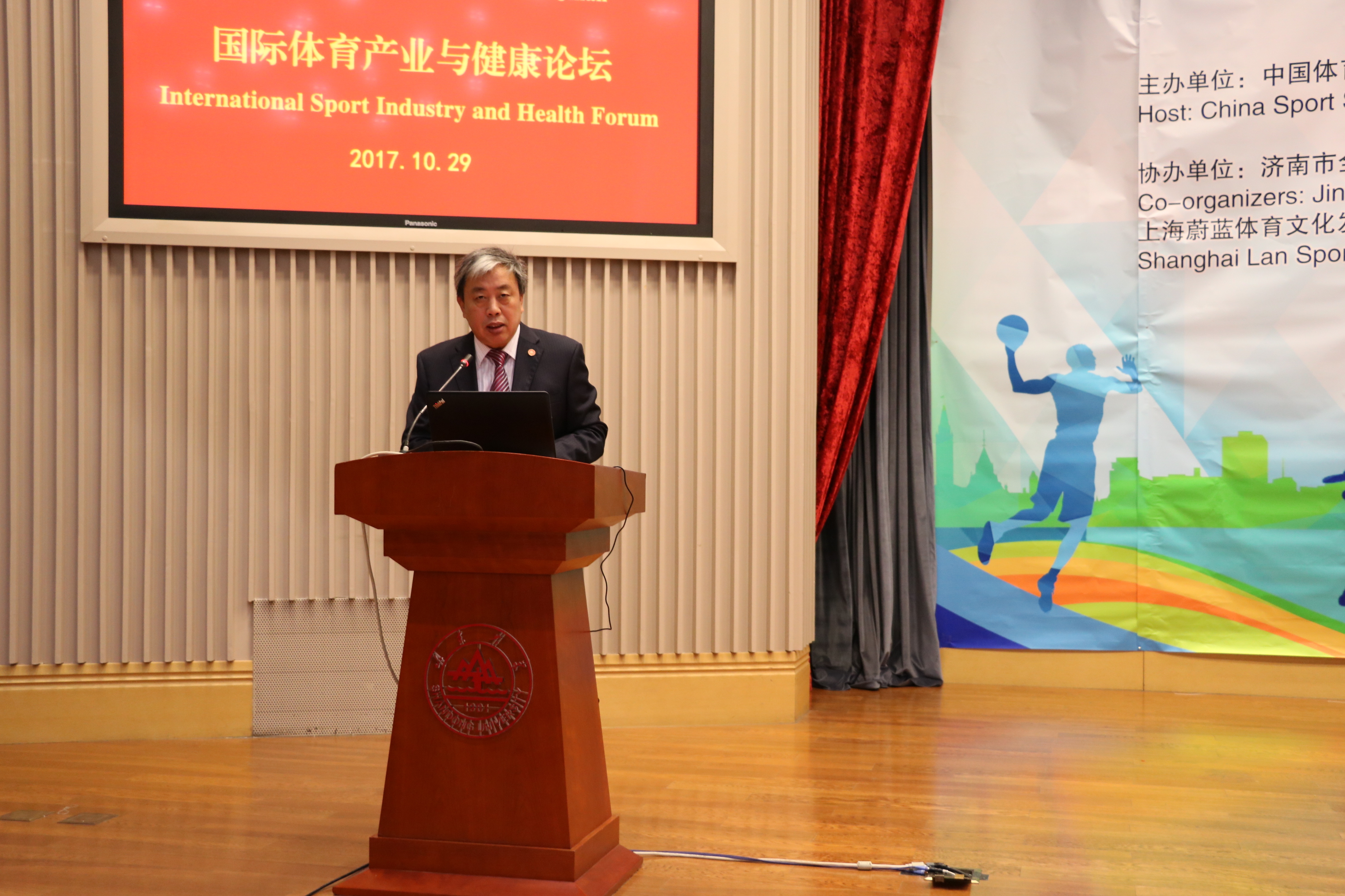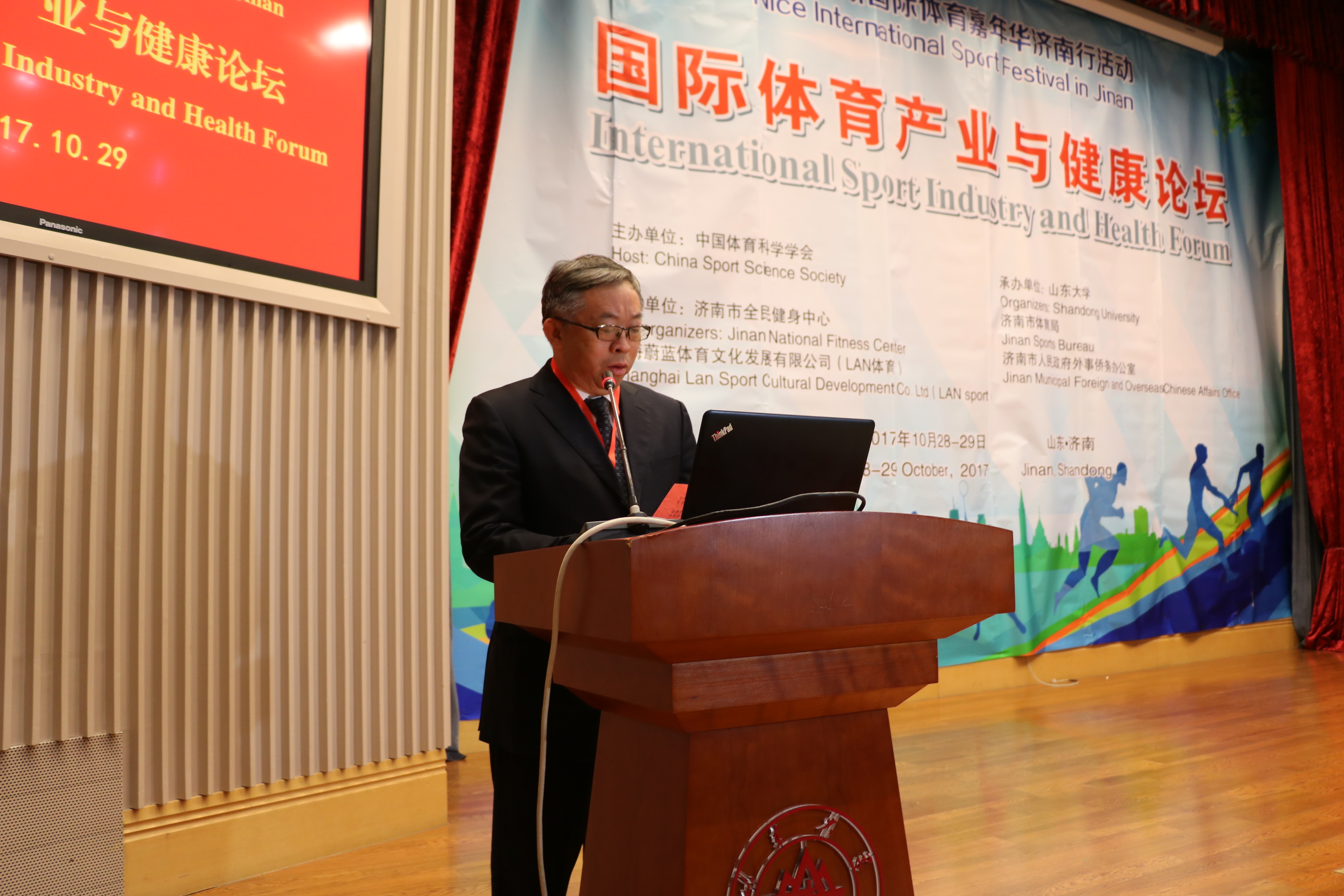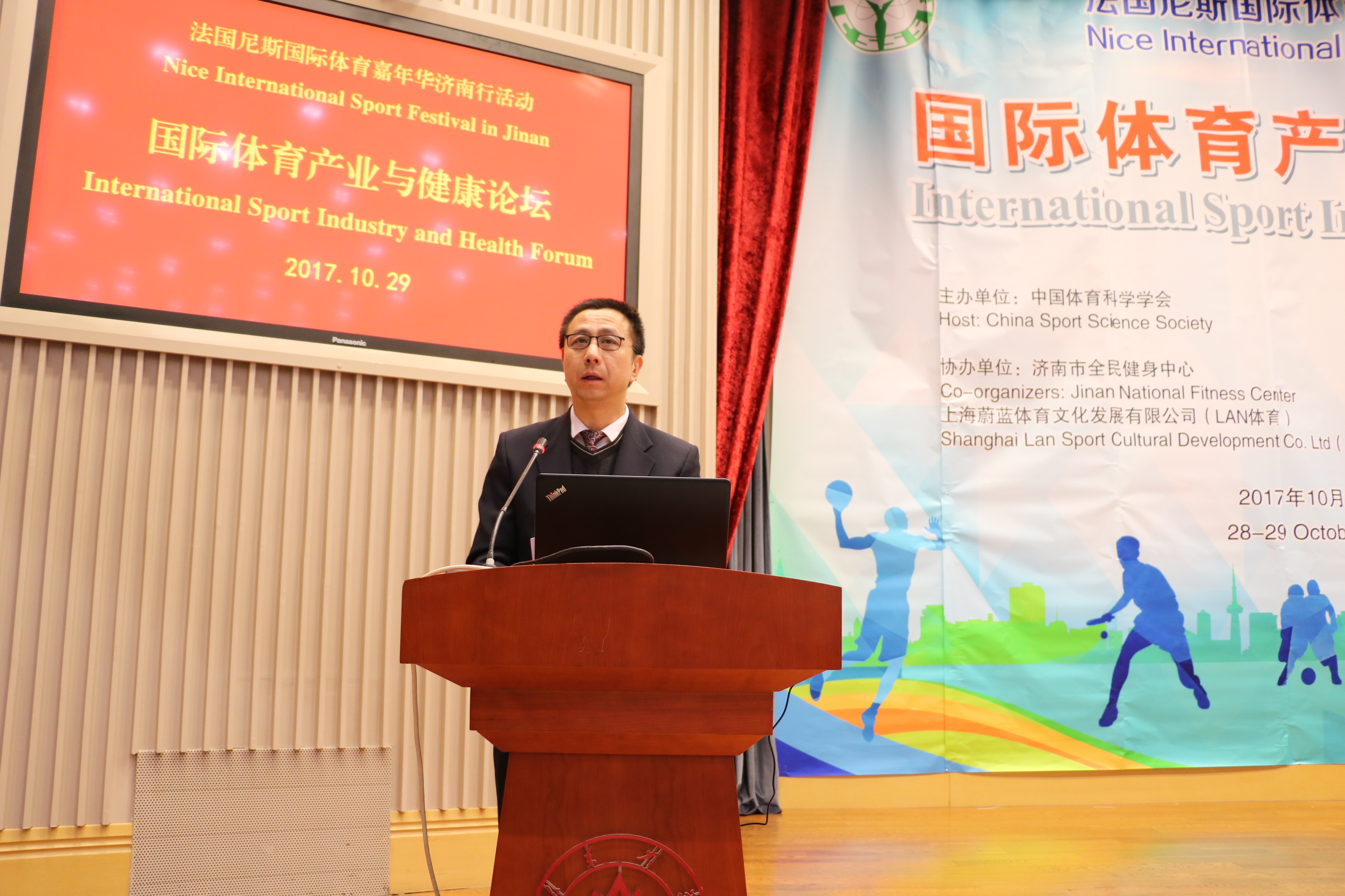 10月29日,国际体育产业与健康论坛在beat365中文官方网站中心校区成功举行。济南市人大常委会副主任许强,国家体育总局科研所所长、中国体育科学学会副理事长、秘书长张良,法国尼斯市副市长周赛·科博斯(Jose Cobos)先生,法国尼斯索菲亚大学丹尼斯·帕瑞萨特(Denis PARISOT)教授,北京体育大学副校长胡杨教授,beat365中文官方网站校党委副书记仝兴华教授,济南市体育局局长高立文,上海蔚兰体育文化发展有限公司(LAN体育)CEO赵海涛等领导嘉宾出席本次论坛。