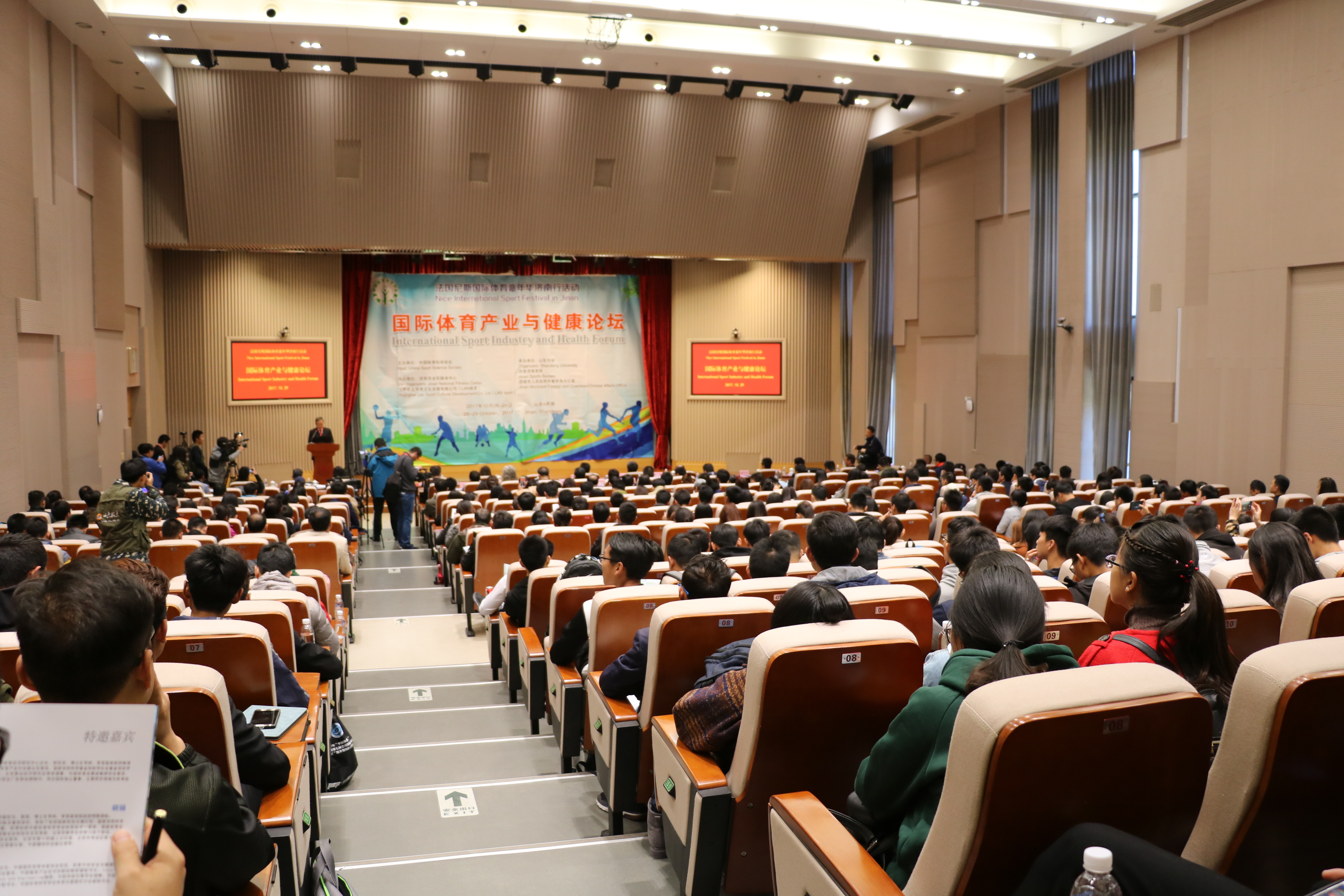 本次国际体育产业与健康论坛由中国体育科学学会主办,beat365中文官方网站、济南市体育局、济南市外事侨务办公室承办。来自中国体育科学学会部分会员单位、阿里体育等知名体育产业公司、beat365中文官方网站、山东师范大学、山东beat365中文官方网站共400多名专家学者和学生参加了此次论坛。