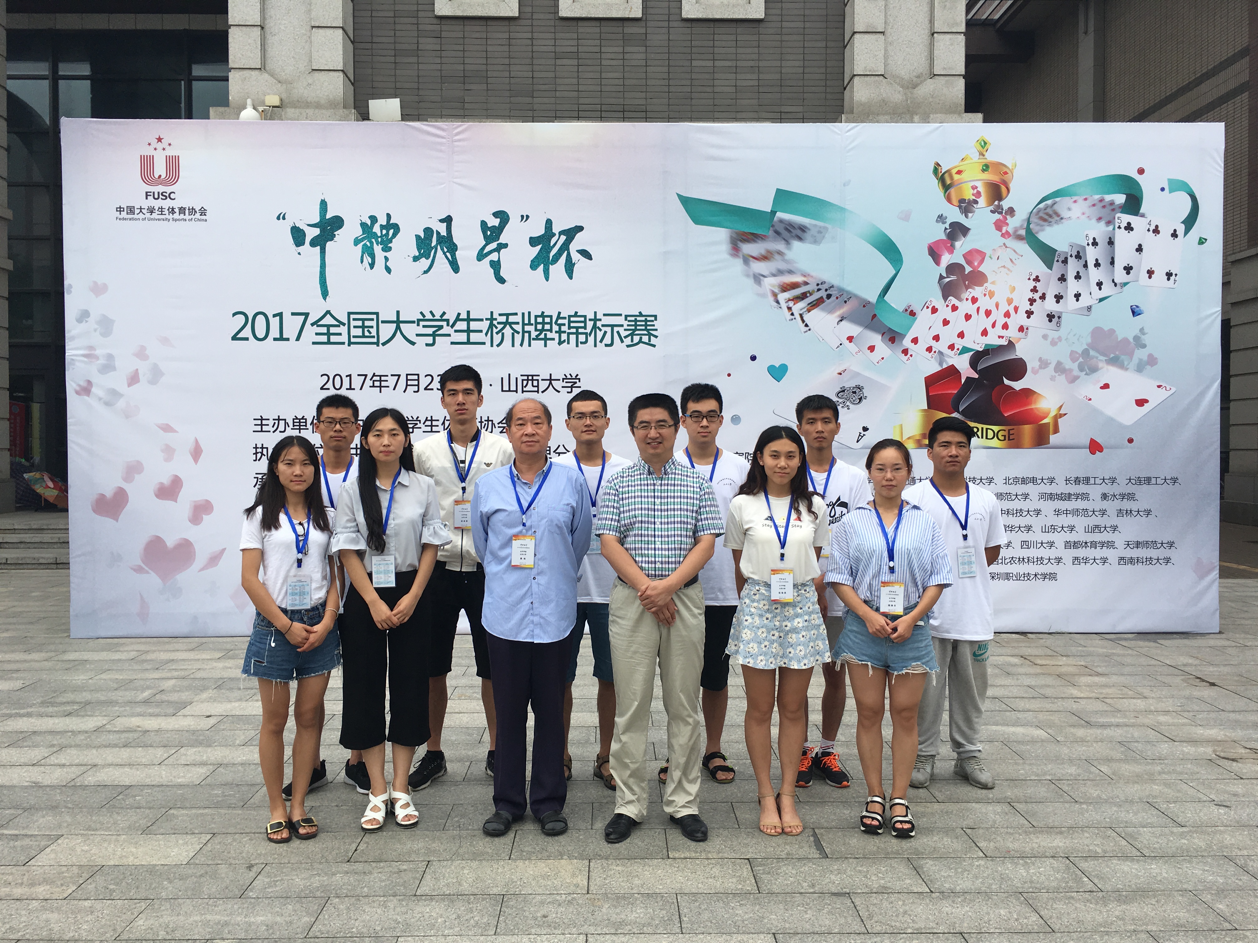 7月23日至26日,由中国大学生体育协会主办,中国大学生体育协会桥牌分会协办的“中体明星杯”2017年全国大学生桥牌锦标赛在山西省太原市山西大学成功举行。经过4天激烈角逐,beat365中文官方网站桥牌队取得了女子双人赛第二名、公开双人赛第六名的优异成绩。