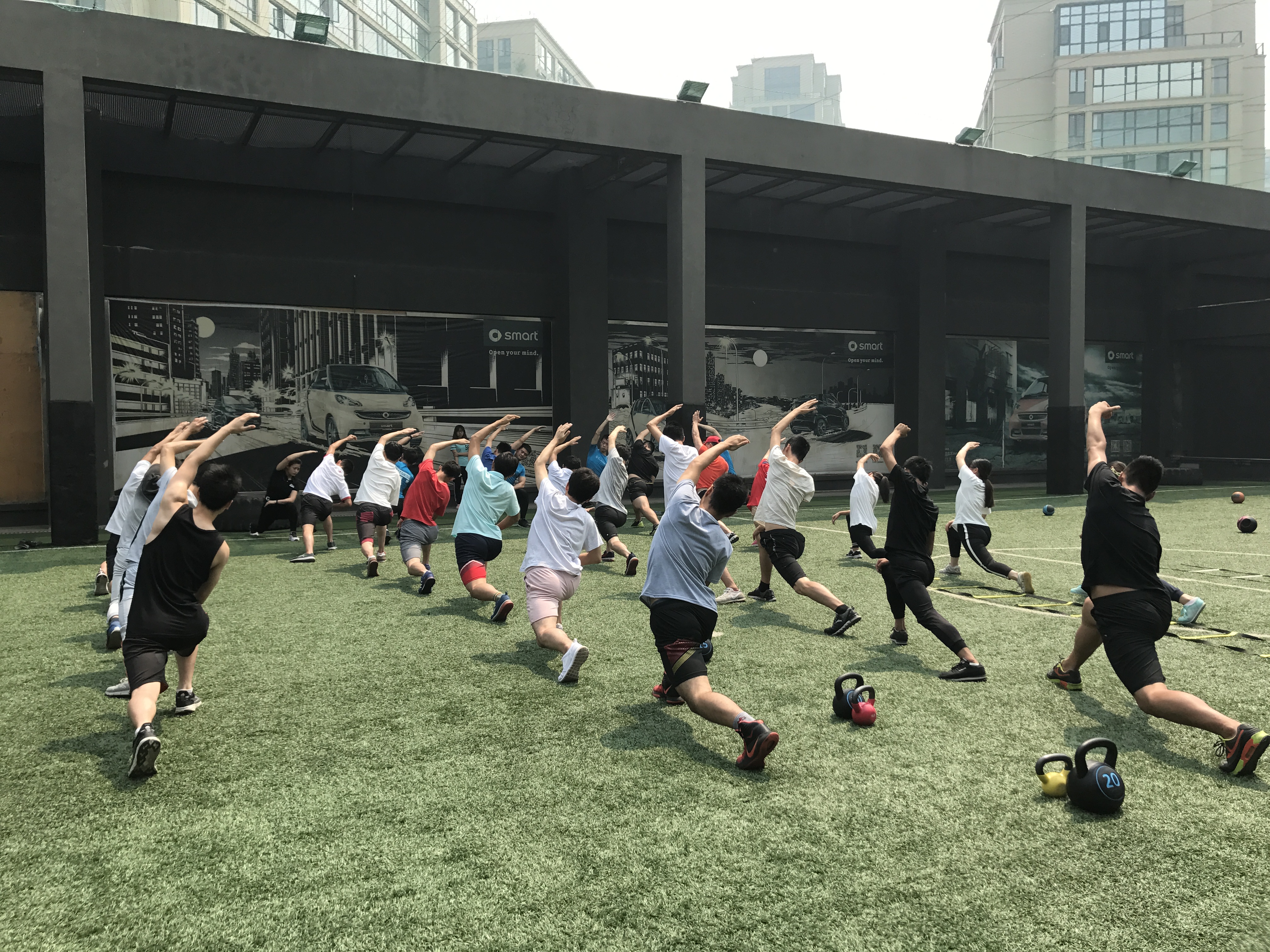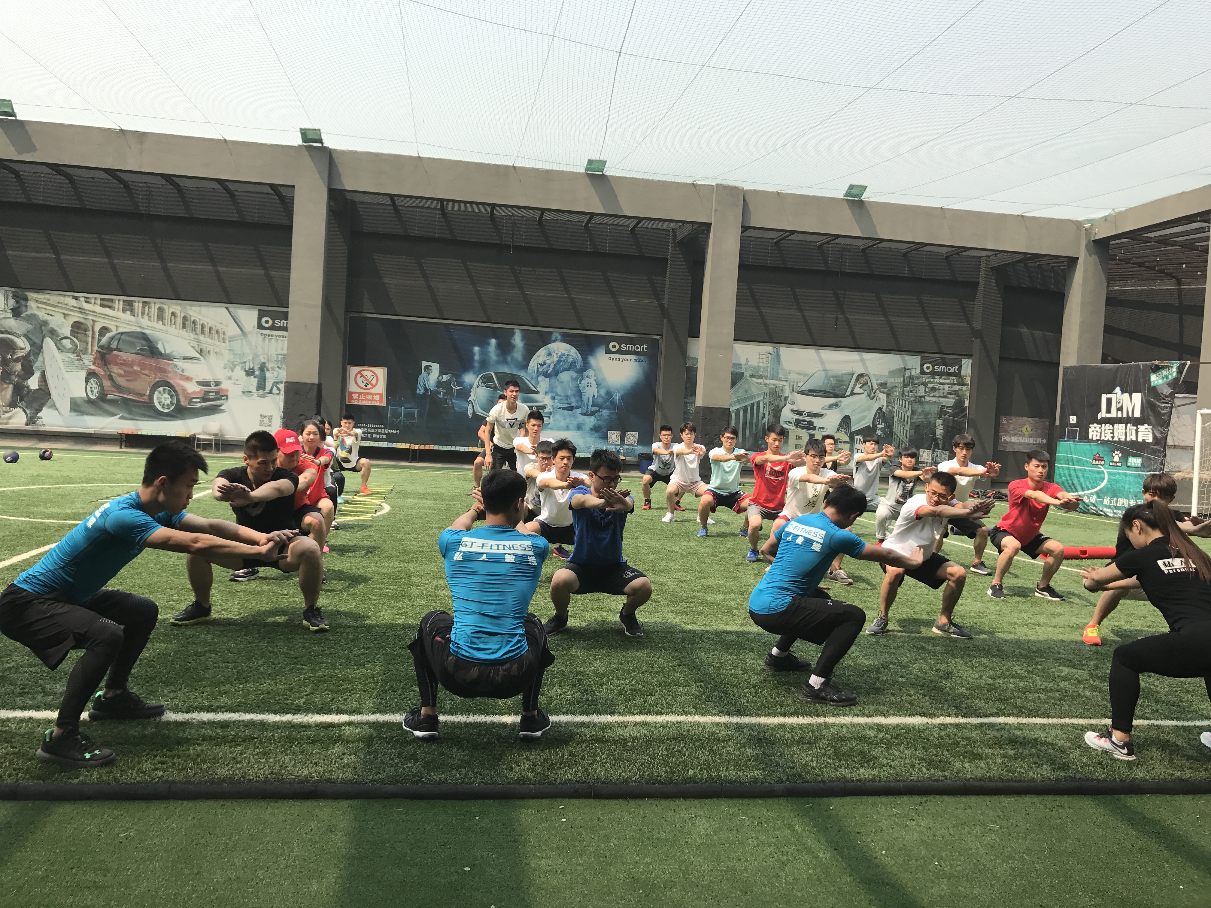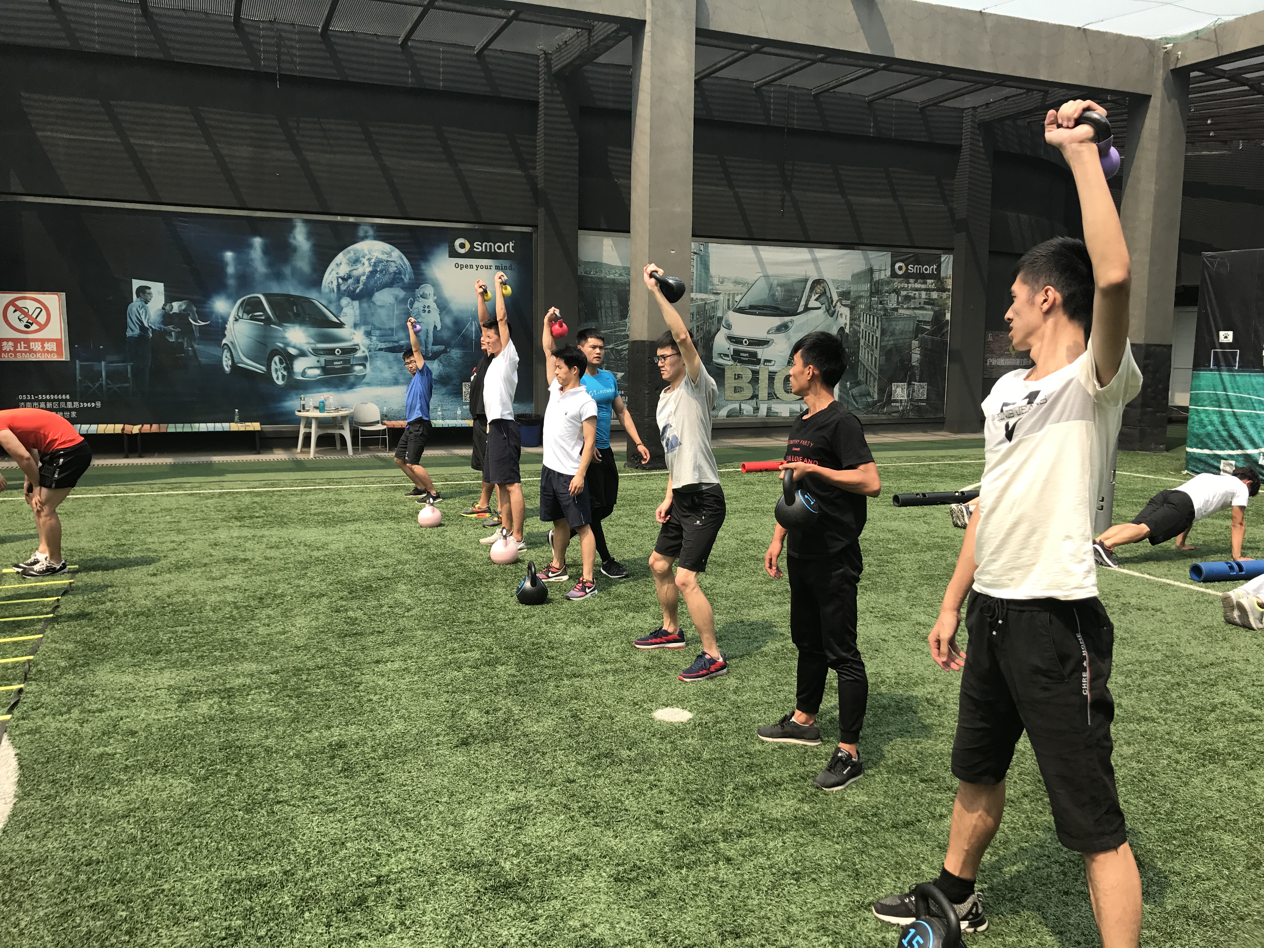 上午9时,同学们来到了GT健身会馆,在馆内教练的带领下,同学们分成三队,依次参观了GT健身总部全运村会馆。在参观结束后,同学们来到健身馆四楼露天足球场进行项目体验。经过专业健身教练的讲解和带领,同学们分成四组,利用敏捷梯、壶铃、药球、炮筒这四种小工具,依次进行了耐力、灵敏度、速度、力量训练。通过四种小项目的亲身体验,同学们了解了锻炼耐力、速度等得方式方法,对身体各部位肌肉的锻炼方法也有了一定的了解。