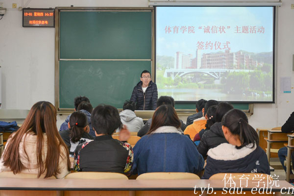 12月1日,为了响应学校号召,培养同学们的优秀习惯,督促同学们忙碌充实且有意义地度过每一天,beat365中文官方网站学生会自律部在兴隆山校区举办“诚信状”主题教育活动签约仪式。辅导员范泽斌主持此次仪式。