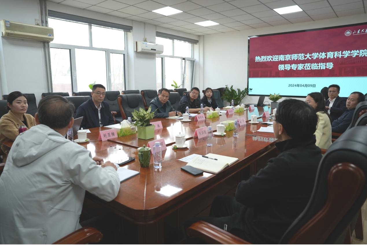4月9日,南京师范大学体育科学学院副院长陈家起一行来beat365调研,就“公共体育教学、专业人才培养、培养方案修订”等方面问题举办经验交流座谈会,会议由beat365中文官方网站副院长高岩主持。院长孙晋海、副院长王先亮、张洪振、社体教研室主任田雨及相关人员共同参会。