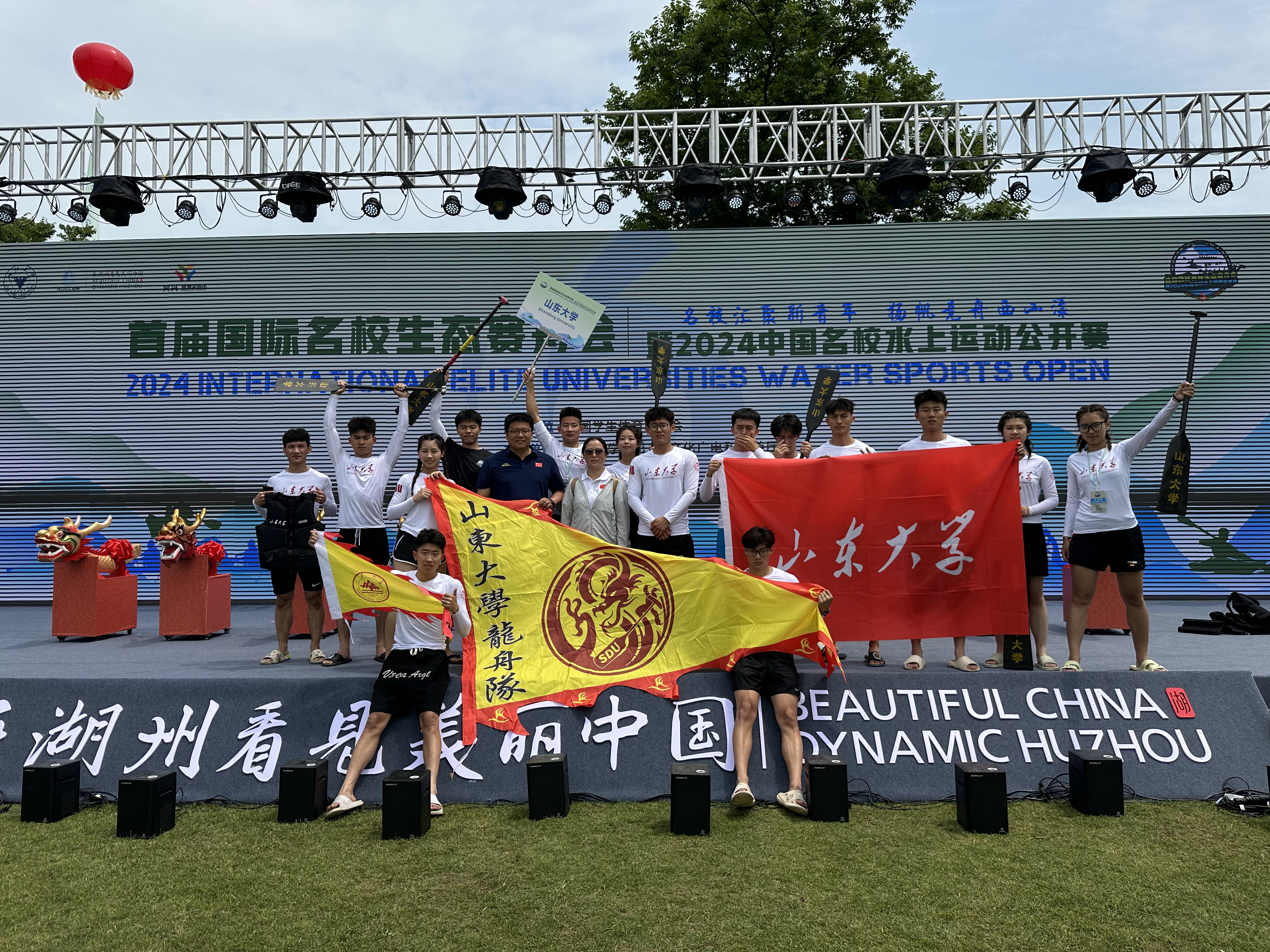 6月1日,首届国际名校生态赛舟会暨2024中国名校水上运动公开赛在浙江湖州举行,山大龙舟队派出12人组队参加男女混合200米龙舟竞速项目,经过预赛、复赛、决赛,最终获得二等奖。