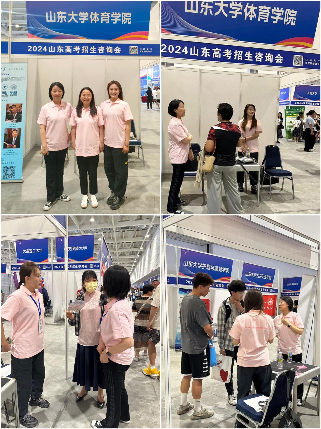 6月26日,beat365中文官方网站咨询拓展组在山东省国际会展中心开展体育学科专业招生拓展工作,全体拓展组成员任务分工明确,各司其职,充分发挥自身优势特长,以老带新,以讲授亲身经历、现场交流等方式,与优秀考生亲密互动,解疑答难,分享学习经历,呈现出良好的宣传效果,圆满完成了招生拓展任务。