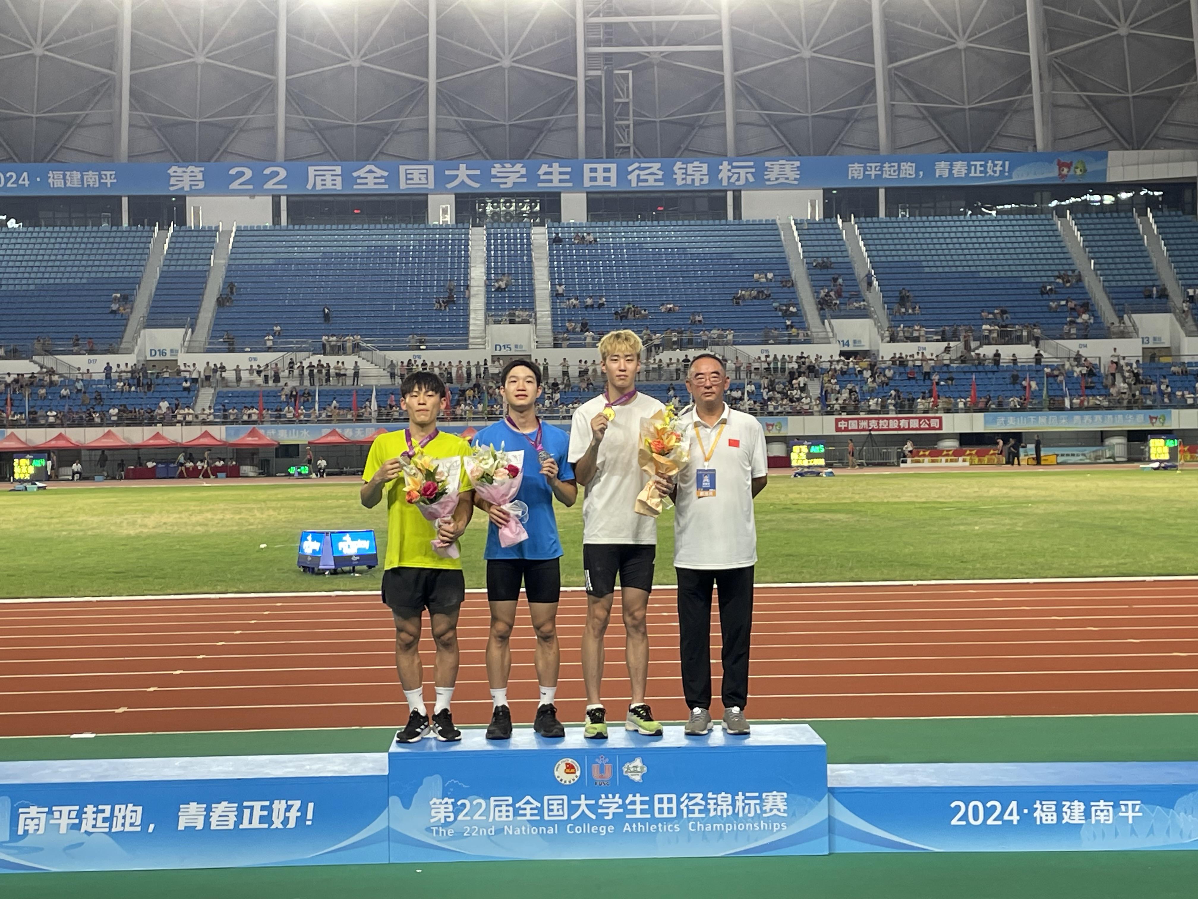2022级学生贾雨潼以51.29米的成绩获得女子丙组铁饼冠军,2023级学生李佳烨以5米的成绩获得男子丙组撑杆跳高冠军;2021级学生王慧在女子丁组3000米障碍,2021级学生李勇杰在男子丙组5000米,张梦婷、裴佳怡、李文豪、牛金山组合在丙组混合4×400米接力夺得3枚银牌;2022级学生褚学士在男子丙组110米栏、刘智新在女子丁组铁饼、刘星辰在男子丁组跳远三个项目中分别获得铜牌。其中,褚学士凭借14秒02的110米栏成绩、刘星辰以7.89米的跳远成绩,达到了国家运动健将标准。