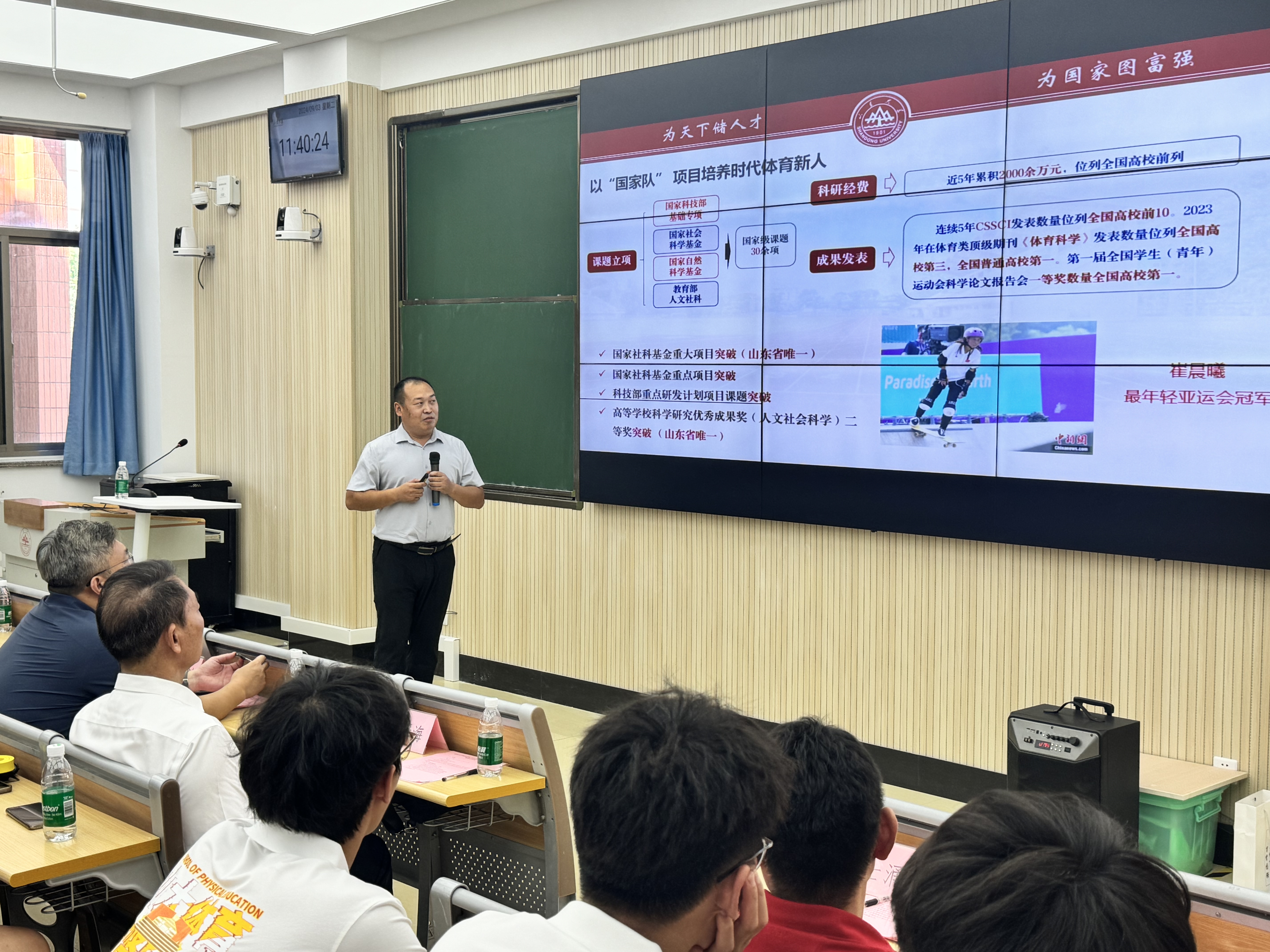 学院院长孙晋海教授代表全院师生向新生和家长的到来表达了热烈欢迎,他从山大体育简史、山大体育二十年发展历史、beat365中文官方网站未来工作计划三个方面向大家做了全面整体介绍,让家长和学生对beat365中文官方网站有了更加直观和深刻的认识。