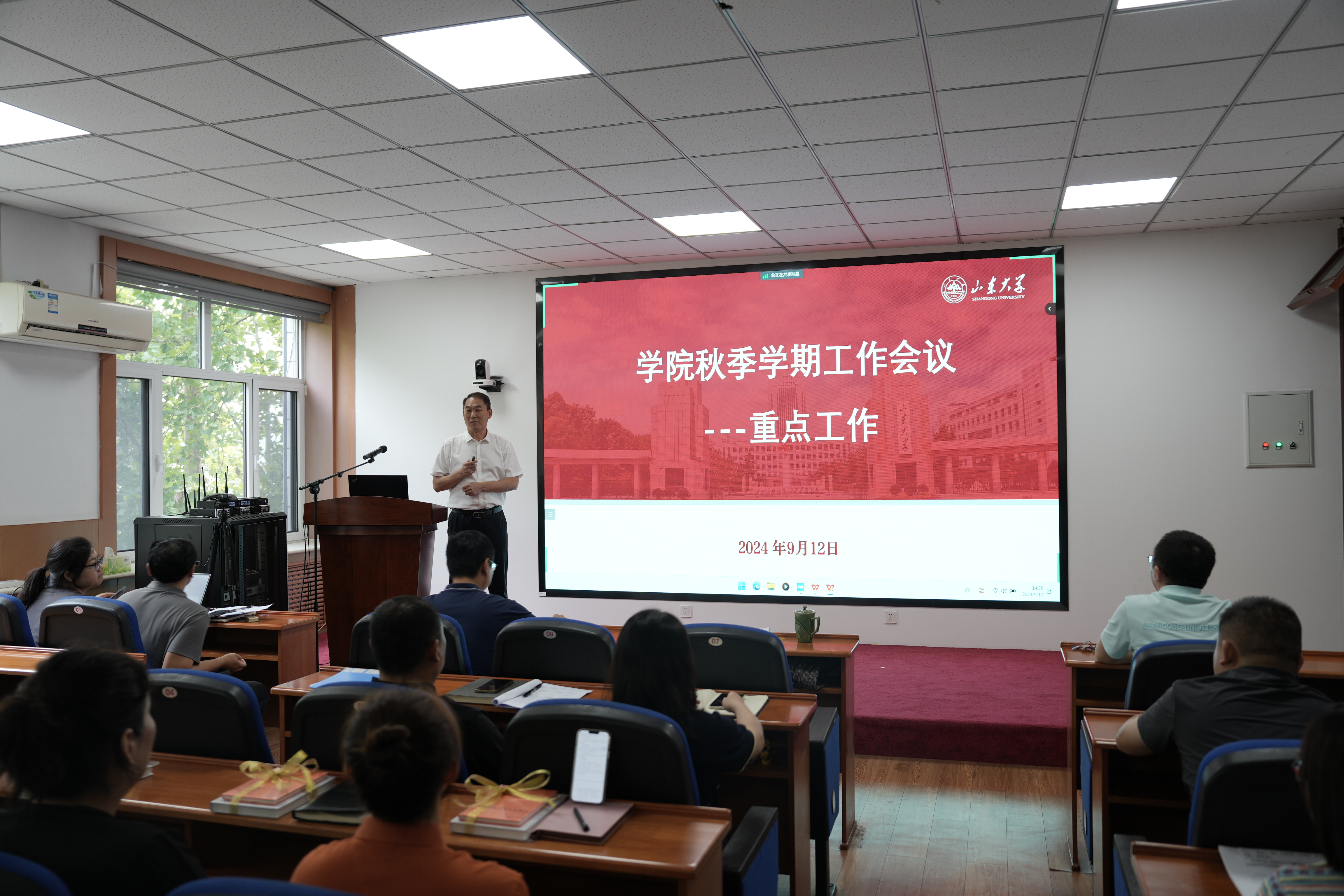 孙晋海结合学校要求,对学院秋季学期重点工作进行了全面部署。他指出,要用习近平新时代中国特色社会主义思想来指导办学治院,深入学习贯彻落实党的二十届三中全会精神和全国教育大会精神,以“闯”“创”“干”的昂扬精神风貌,锚定“一五七九”发展思路,结合学院实际,聚焦工作重点,大力解放思想,用好改革“关键一招”,谋划制定各项工作方案,强化学院制度和精神建设,强抓工作督促落实,高质量更高水平完成各项工作任务。