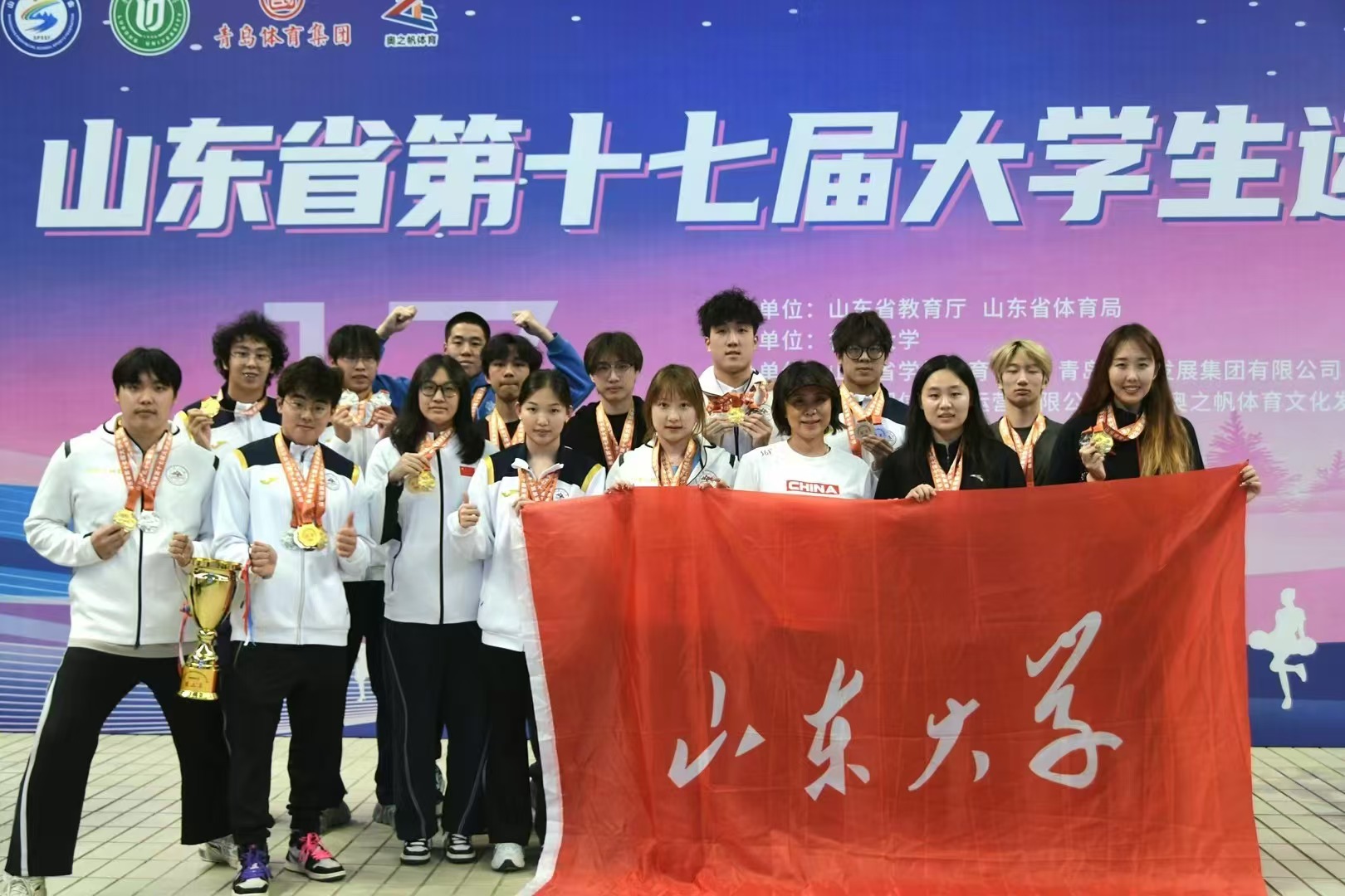 11月16日-19日,山东省第十七届大学生运动会游泳比赛在青岛国信体育中心游泳馆举行。来自全省35所高校的运动员齐聚一堂、同场竞技。