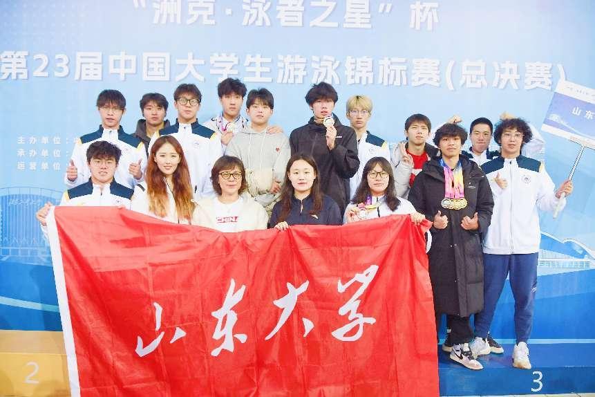 山大游泳队派出的13名队员是在之前的北方赛区比赛中获得的总决赛参赛资格,此次共获得五枚银牌、一枚铜牌和多个前八名的优异成绩。朱子昂同学在200米蛙泳获第二,同时打破了男子丙A组200米蛙泳的赛会记录;周瀚韬获男子丁组200米蝶第二;林哲鹏获男子丁组200米蛙第二;曹新懿获女子丁组200米蛙第二、50米蛙第三 ;曹子晗女子丙A组800米自由泳第二;王琛迪、周晟杰、胡俊涛分获四到八名成绩。