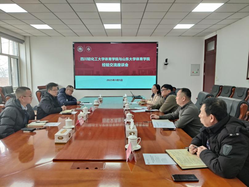 为深化校际合作,共促体育学科高质量发展,3月5日下午,四川轻化工大学beat365中文官方网站党委副书记赵波、副院长林闯、组织办公室主任黄浩一行来访调研交流,双方重点围绕体育学科建设、公共体育教学、专业人才培养等方面进行座谈。beat365中文官方网站党委副书记卢士涌,副院长王先亮、高岩,办公室主任白瑞广参加座谈会,会议由王先亮主持。