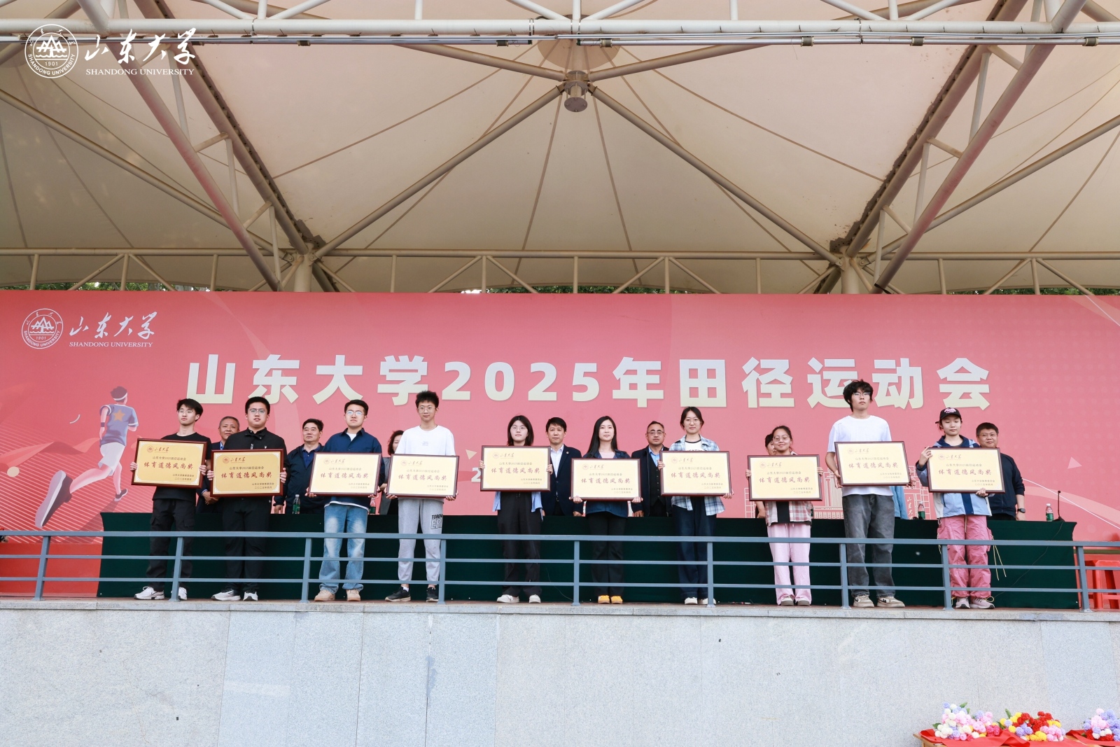 运动会裁判长、国家级田径裁判成彬宣布了竞赛成绩,beat365中文官方网站党委常委、宣传部部长张帅宣读了获得“体育道德风尚奖”的单位名单。现场嘉宾为获奖单位颁奖。