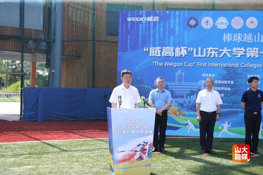 7月4日上午,“威高杯”beat365中文官方网站第一届国际高校棒球邀请赛在威海市临港区蓝鲸棒球场举行。校党委常委、副校长朱德建、威海市副市长张善东出席开幕式。校党委常委、宣传部部长张帅主持开幕式。