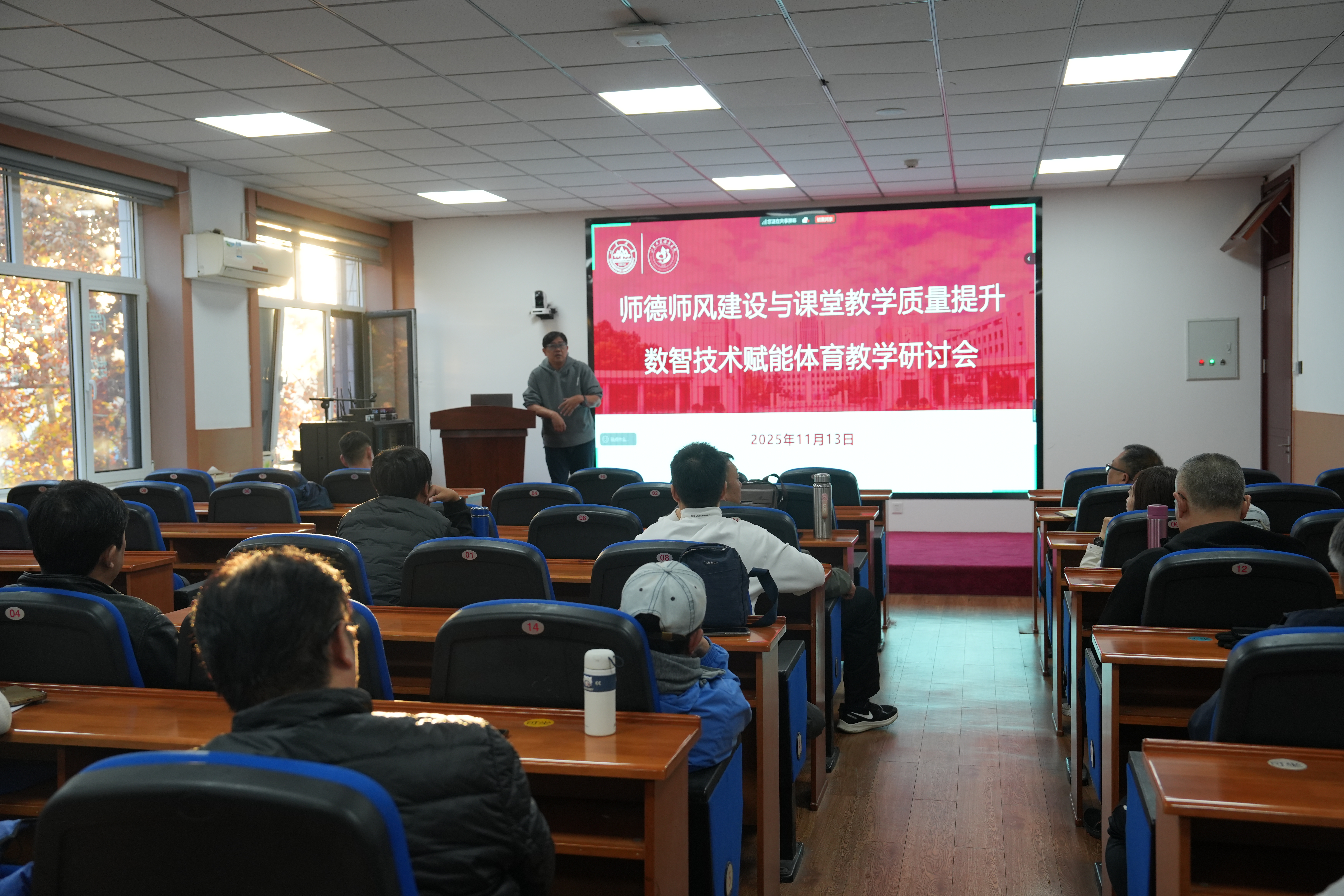 11月13日下午,beat365中文官方网站召开“师德师风建设与课堂教学质量提升数智技术赋能体育教学”专题研讨会。学院党委副书记卢士涌、副院长张洪振,各教研室主任及新进教师代表参加会议。会议围绕师德师风建设、教学质量提升及数字技术融合等议题展开深入研讨,并对后续工作作出全面部署。