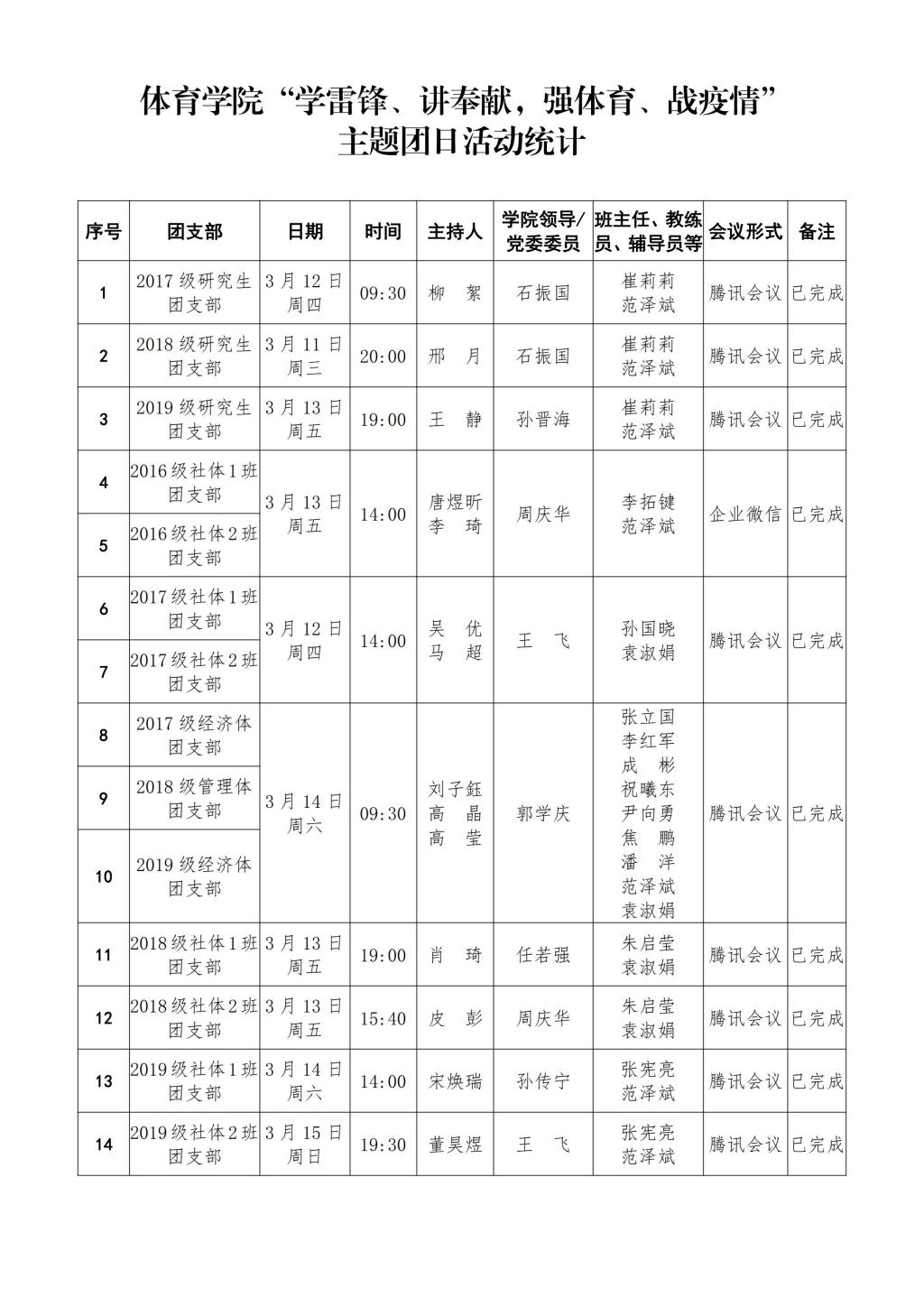 3月11日至15日期间,beat365中文官方网站团委积极响应学校党委和学校团委关于疫情防控期间的有关工作部署,结合3·5学雷锋日和全校开展体育育人线上工作时期,组织学院全体团支部开展了“学雷锋、讲奉献,强体育、战疫情”主题团日活动。