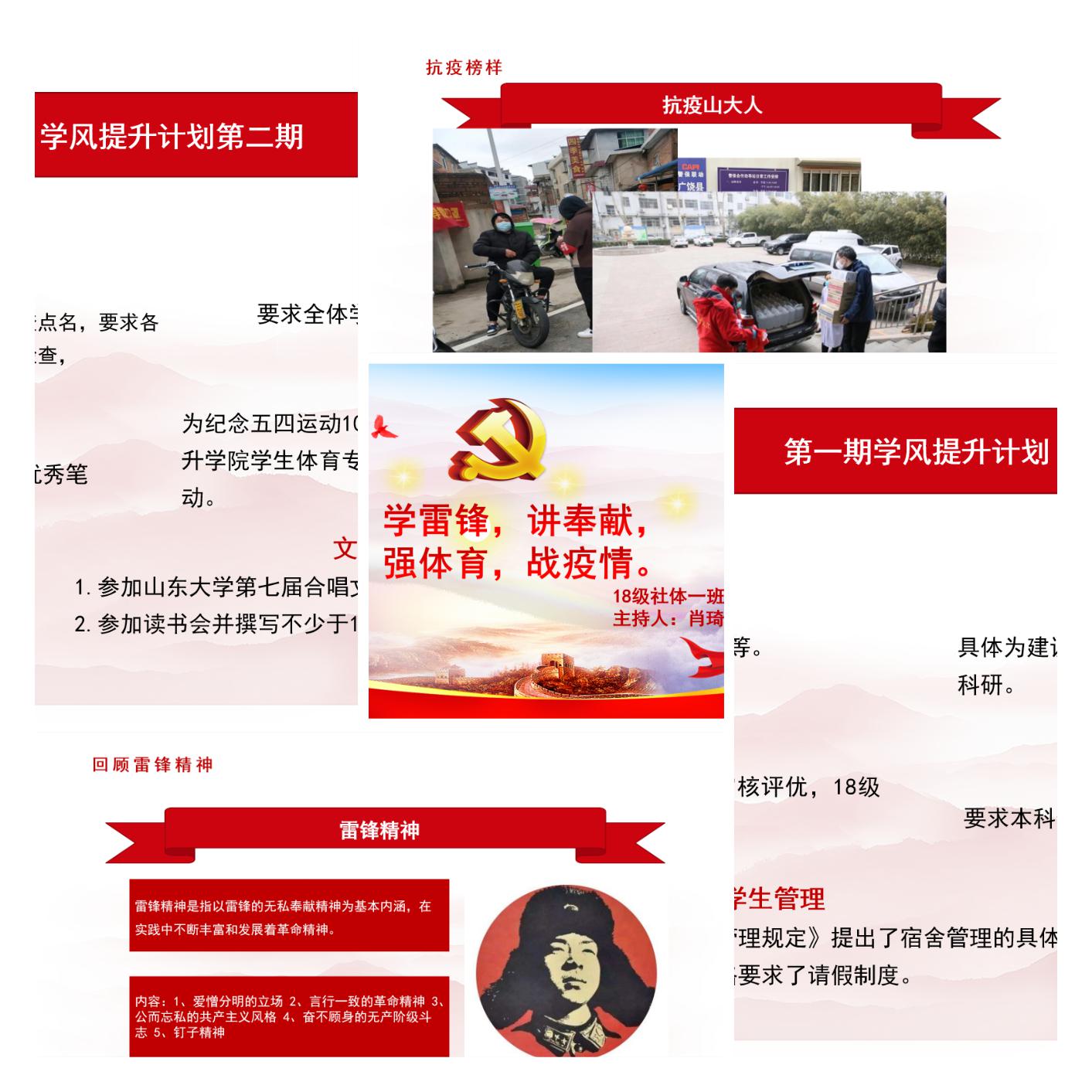 主题鲜明,充分结合当下形势和学院实际——活动内容包含四大主题:一是,开展“学雷锋、讲奉献”主题团课,学习学校发起的“学雷锋 战疫情 讲奉献 爱劳动”倡议,组织全体团员向奋斗在抗疫一线的先进典型学习,畅谈新时代山大人应如何发扬劳动精神,积极参与志愿服务,激励青年学子传承新时代雷锋精神,为战胜新冠肺炎疫情,贡献山大智慧、青年力量;二是,开展“全国大学生同上一堂疫情防控思政大课”观后大讨论,围绕3月9日聆听四位思政大家线上授课,展开心得体会交流研讨;三是,开展“强体育、战疫情”团员大讨论,围绕beat365中文官方网站学生如何在beat365中文官方网站全校的体育育人工作中发挥积极作用,特别是在疫情防控期间,如何通过beat365中文官方网站学生的行动,促进全校学生开展体育锻炼、提升体质健康,展开大讨论;四是,开展beat365中文官方网站学风提升大思考,围绕学院前几个学期开展的学风提升计划,思考目前学院学生学风建设中存在的弱点和短板,提出有建设性的意见建议。