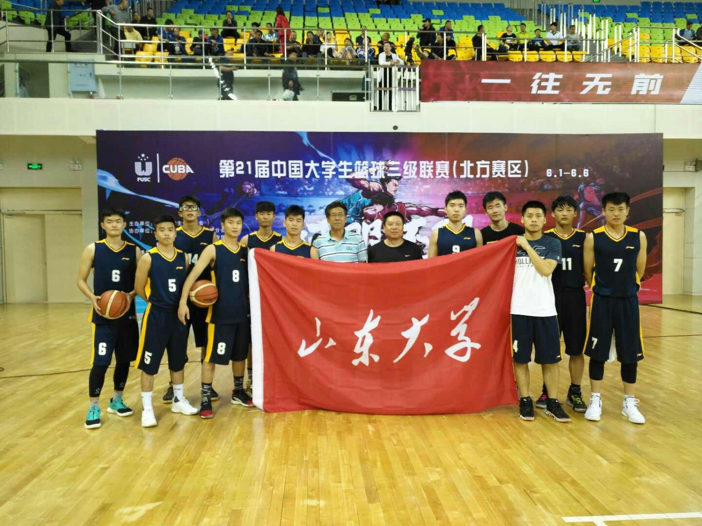 6月1日-7日,为期一周的第二十一届Cuba全国大学生篮球比赛三级联赛(北方赛区)在黑龙江省鹤岗市落下帷幕,山大男篮作为山东代表队出战参加阳光组比赛,山大男篮队员在主教练于旭光、助理教练许永玲的带领下,将帅齐心,顽强拼搏,强势挺进北方四强,连续两年进入全国八强之列。