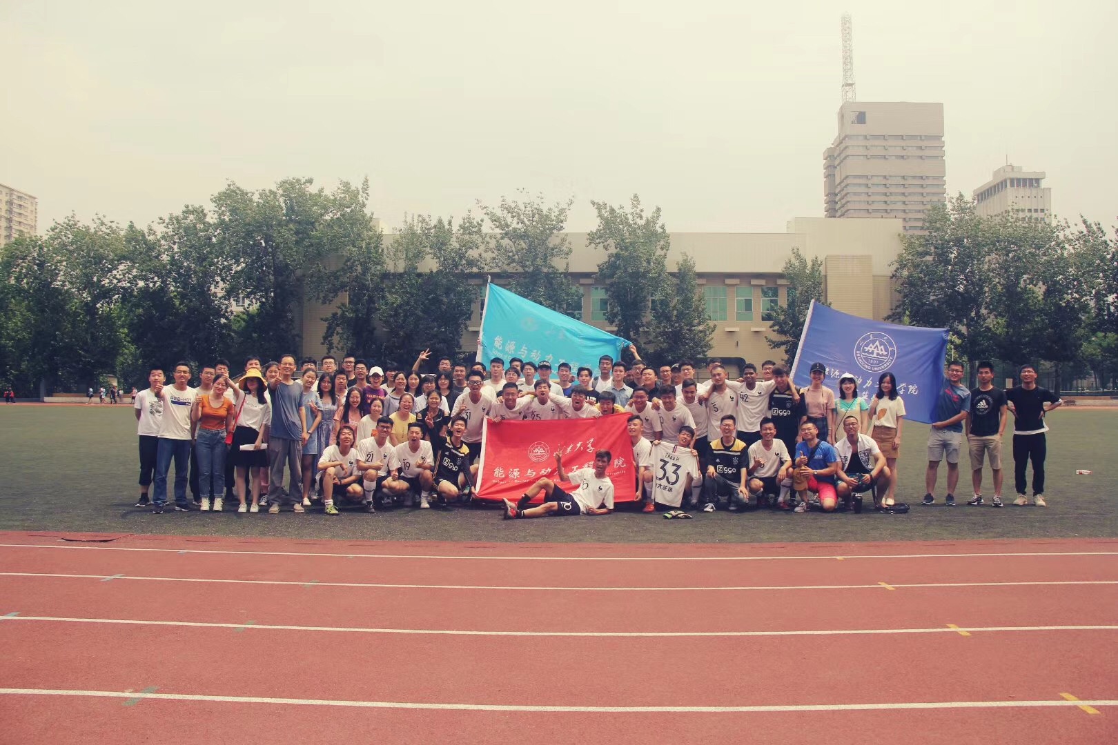 随着裁判的一声哨响,能动学院与管理学院展开了冠亚军之争。整场比赛打得十分火热,双方的攻势此起彼伏。上半场刚开场不久,能动学院就趁管理学院立足未稳先进一球。随后攻势有增无减,但管理这边毫不示弱,凭借积极地拼抢,创造了几脚很有威胁的射门,只可惜都没有转化成得分。下半场,管理学院重新调整了战略队形,调整心态进行反攻,每一位队员的激情丝毫不弱于运输学院,在场上争先恐后,来回传球,可惜每一次进攻总被能动学院化解。场上形势越来越胶着,时时发起高潮,场边的观众也渐渐的多了起来,大家连连欢呼叫好,紧张的气氛一直环绕在球场上方。随着比赛的深入,管理学院球员体力下降明显,能动学院抓住机会,连进两球,把比分进一步扩大,终场时,比分定格在4:1。