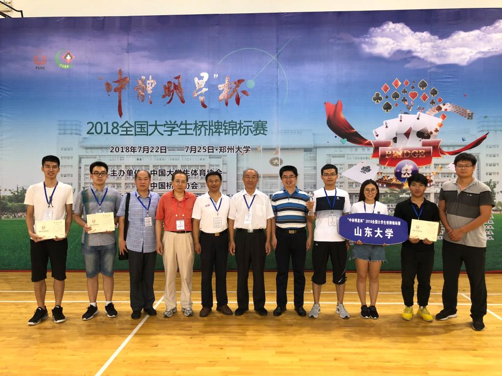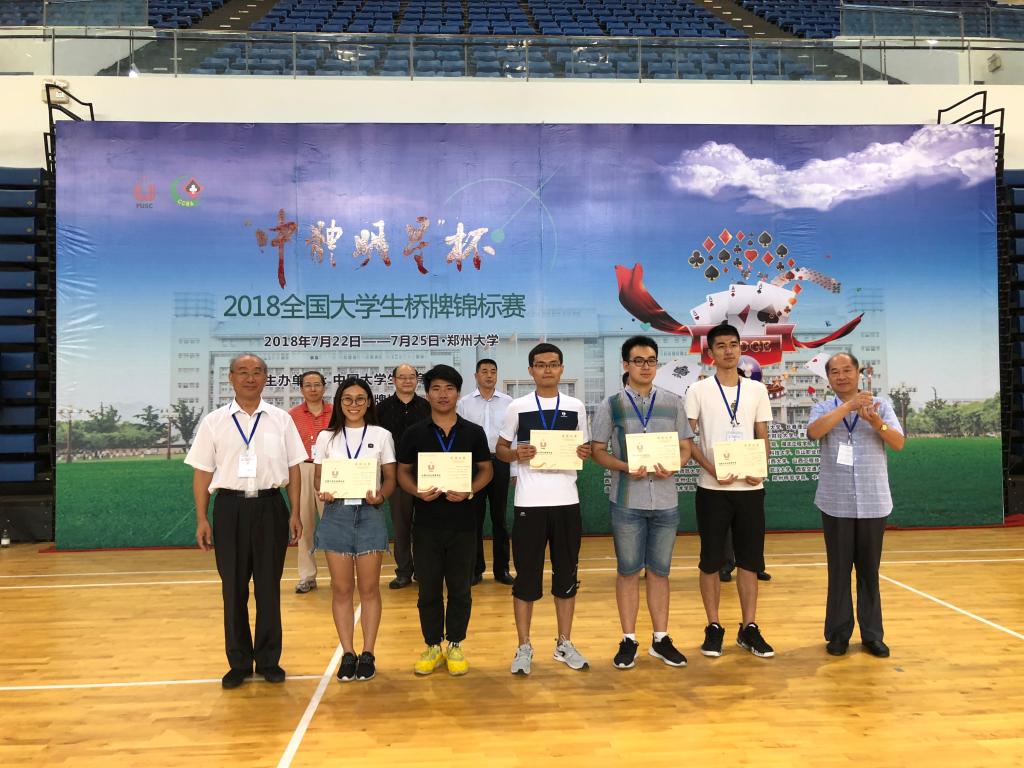7月22日-25日,“中体明星杯”2018年全国大学生桥牌锦标赛在郑州大学举行,经过4天的连续比赛,beat365中文官方网站桥牌队荣获公开甲级团体赛冠军,上海财经大学、华中科技大学分获第二、第三名。这是beat365中文官方网站桥牌队组建以来获得的含金量最高的一次团体冠军。beat365中文官方网站桥牌队成立于2013年1月,近4年先后获得两次全国大学生桥牌锦标赛女子甲级团体冠军、一次全国智力运动联赛总决赛冠军、一次大学生国家队选拔赛冠军,实现了4年5冠的优异成绩。2018年10月,beat365中文官方网站桥牌队将代表中国大学生桥牌队再次出征世界大学生桥牌锦标赛。